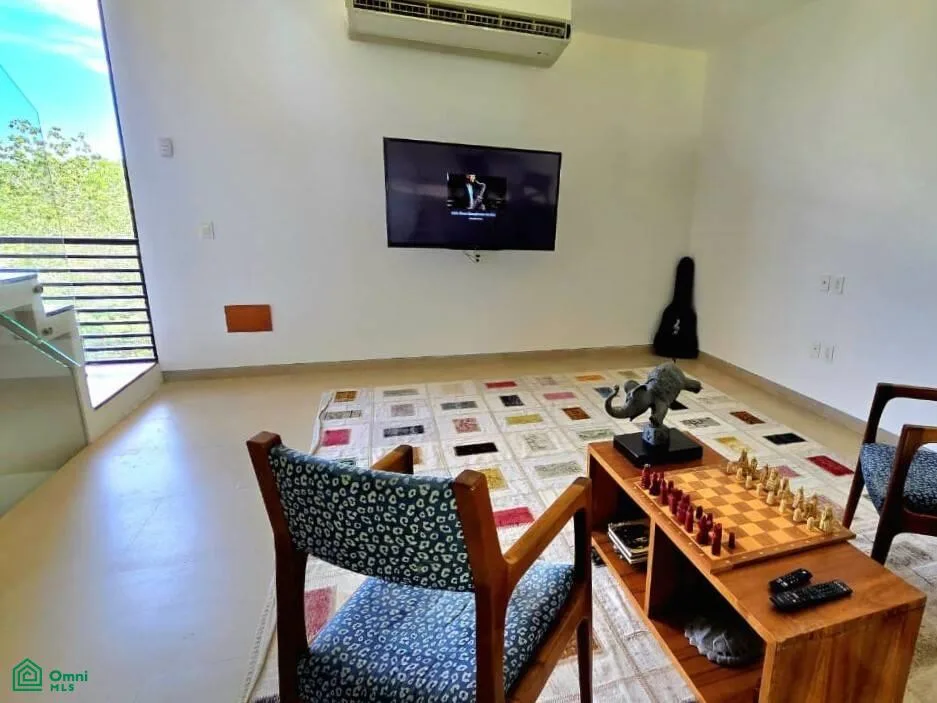 This two-story house is located within the Cancun Country Club Residences & Golf in Quintana Roo, Mexico. It features three bedrooms, two bathrooms, a private pool, and direct golf course frontage.