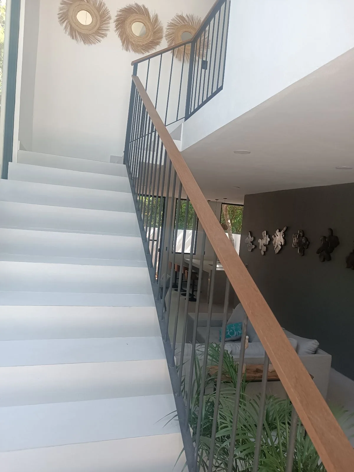 The home is situated approximately 10 minutes from the center of Puerto Morelos and roughly 25 minutes from Cancun.