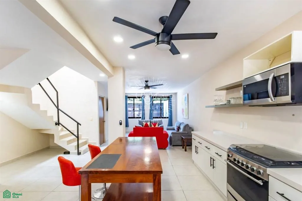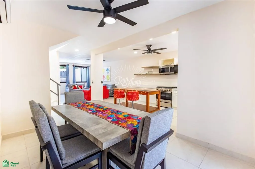 The home is situated on the quiet and secure Calle Delfín, directly across from a sports complex with pickleball and soccer facilities. Everyday conveniences such as fruit stands, corner shops, stationery stores, and a veterinary clinic are within walking distance. The location is approximately 10 minutes from the beach and 20 minutes from the airport.