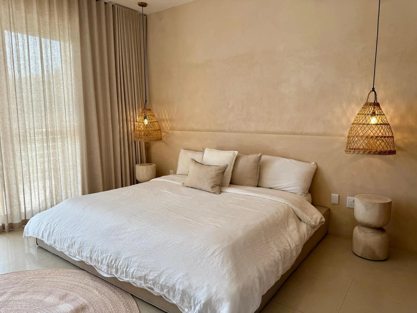 The property includes one primary bedroom with two full bathrooms. It has been renovated with chukum finishes that are in total harmony with the decor, creating a luminous Caribbean feel. The unit is positioned within the condominium to ensure privacy and features a wide balcony and a service room. The apartment is sold fully furnished and decorated.