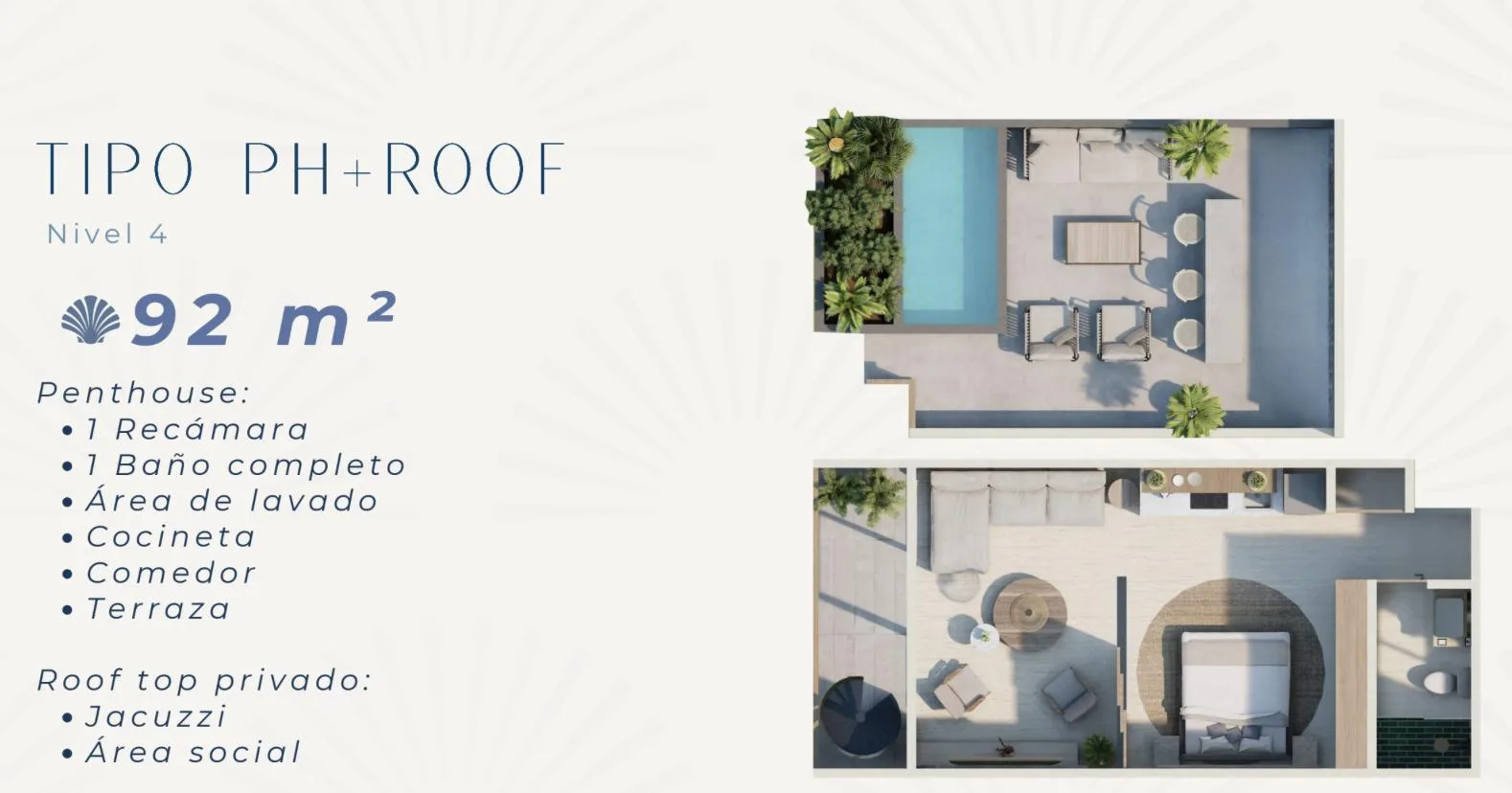 One-Bedroom Penthouse Apartment with Private Rooftop Jacuzzi in Puerto Morelos