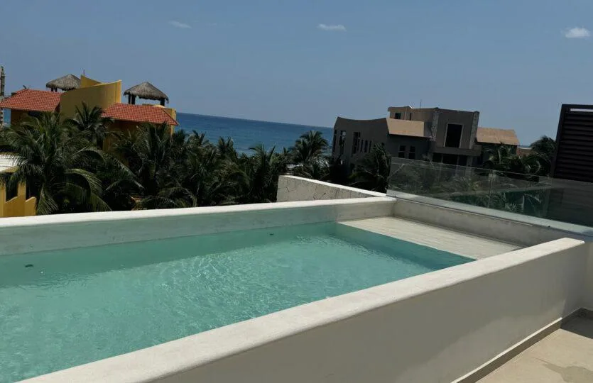 This luxurious, gated community is just minutes from the Tulum Country Club and the world-renowned PGA Riviera Maya Golf Club. The development features a spacious rooftop with stunning ocean views, two ground-floor pools, a barbecue area, a yoga space, a gym, and a lounge area with sunbeds. Ownership includes access to an exclusive Tao Wellness Center.