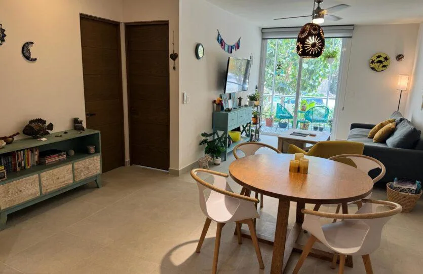 This incredible ground-floor apartment is located on a quiet street in the Punta Sur neighborhood of Akumal. It features a private garden and a lock-off design within the Tao Santamaria development. The residence is just steps from the fantastic beaches of the Mexican Caribbean and surrounded by mangroves.