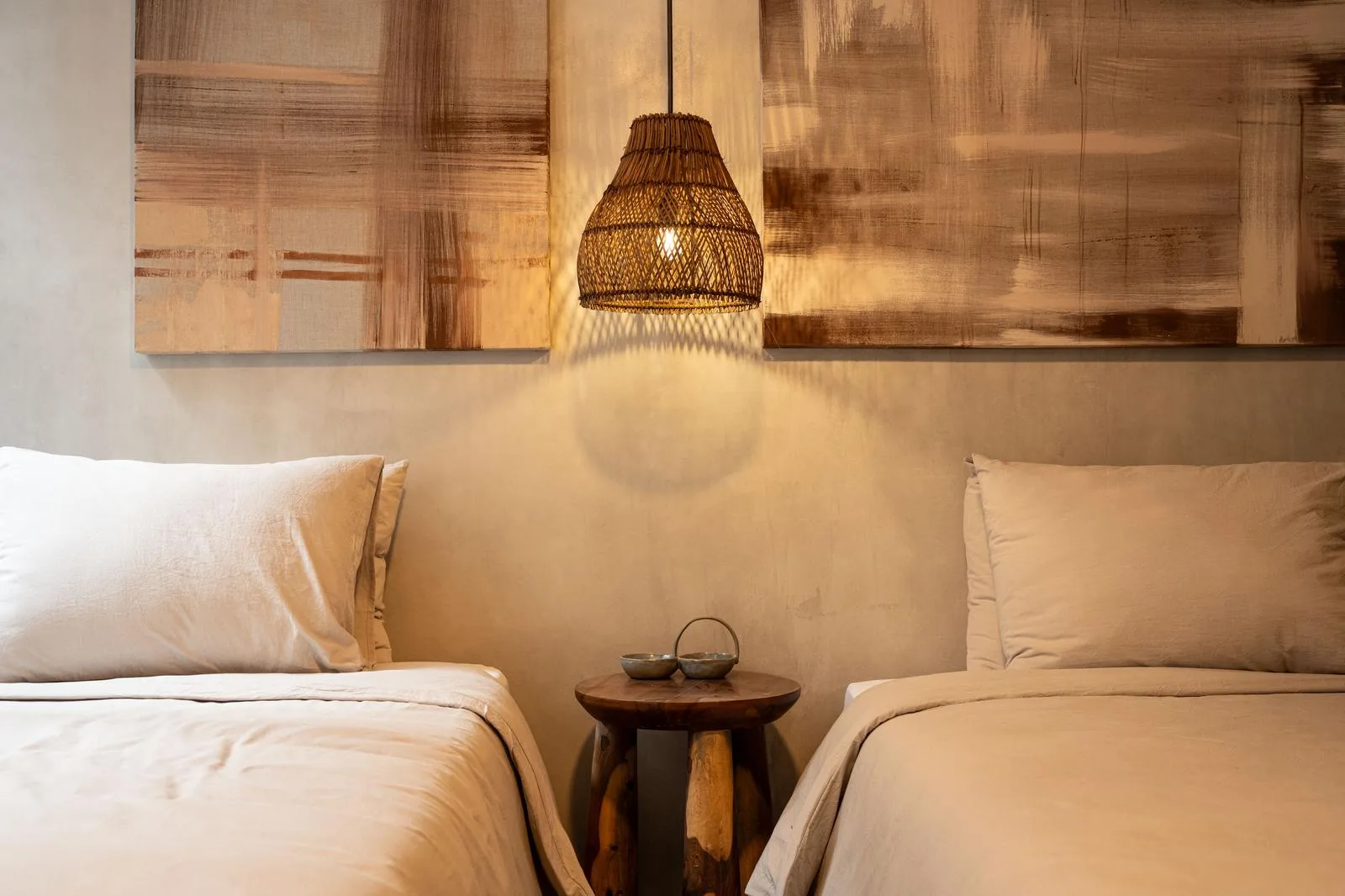 The residence features three bedrooms. The architectural and interior design creates spaces that flow in harmony with the natural surroundings, emphasizing a minimalist style that blends elegance and warmth.