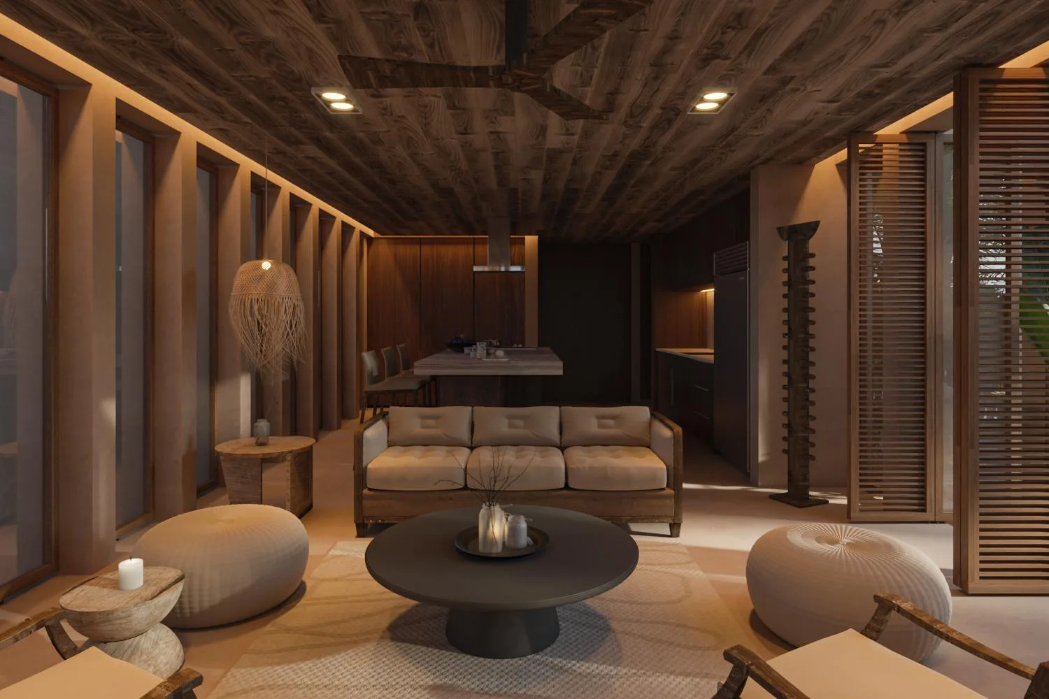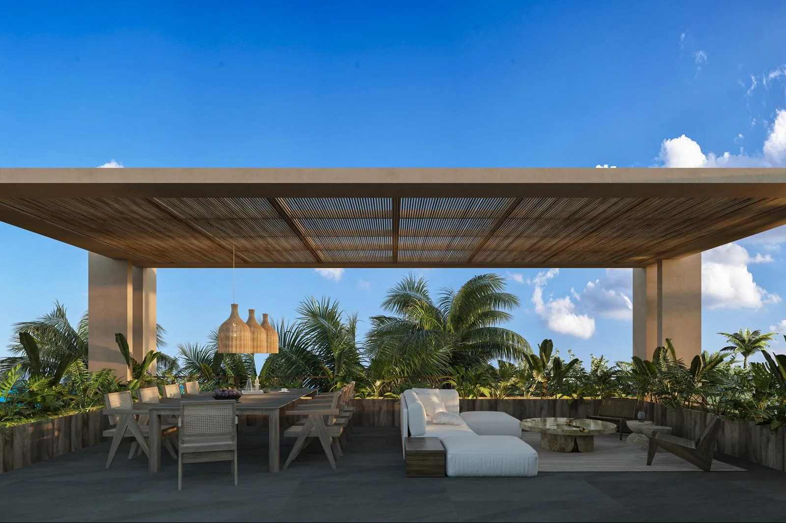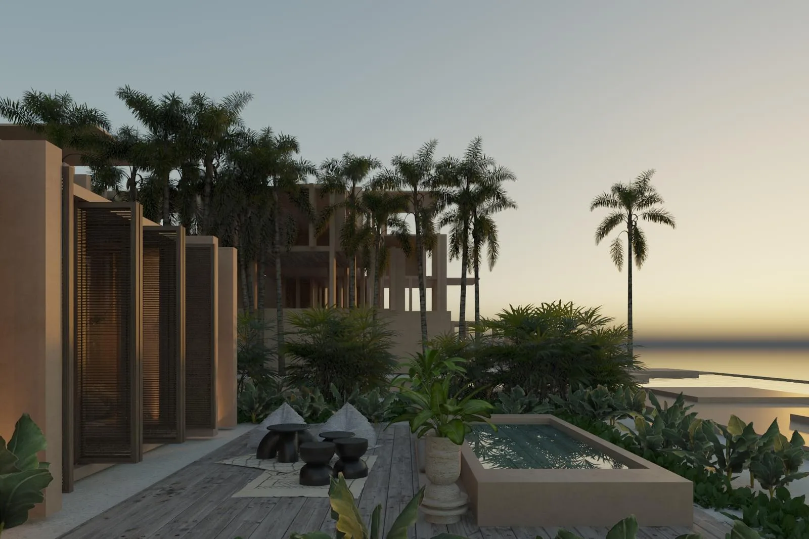 This villa features 4 bedrooms and spans 544. 30 square meters. It is located in a prestigious area of Tulum, directly by the sea.
