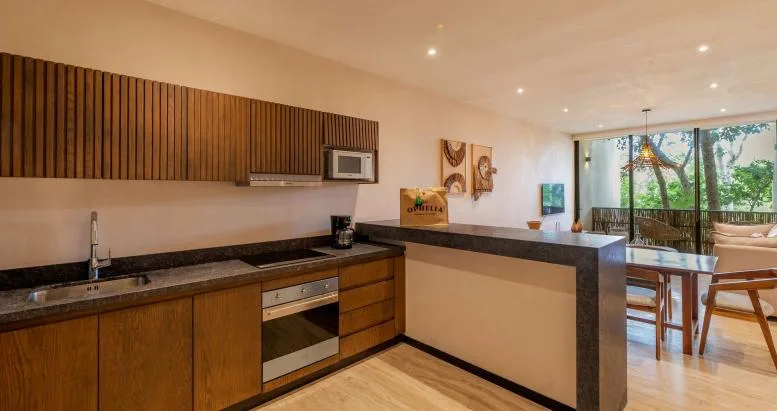 This 60-square-meter, one-bedroom apartment combines comfort and style in the heart of Tulum.