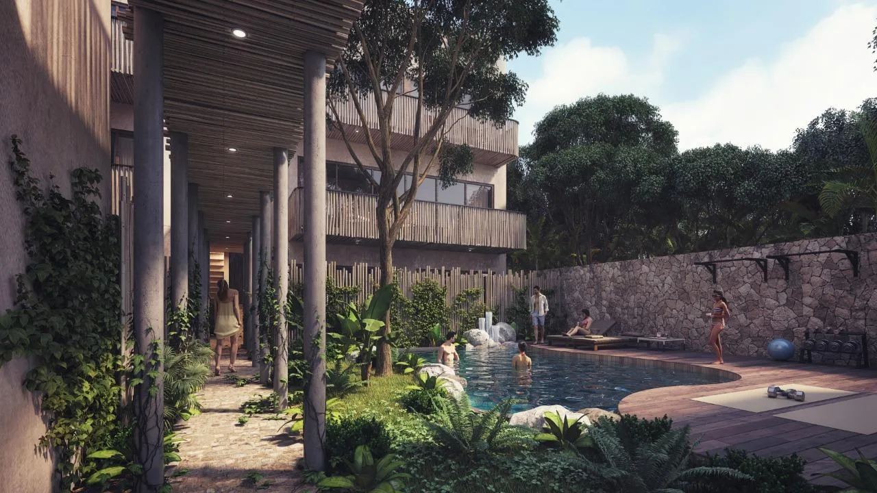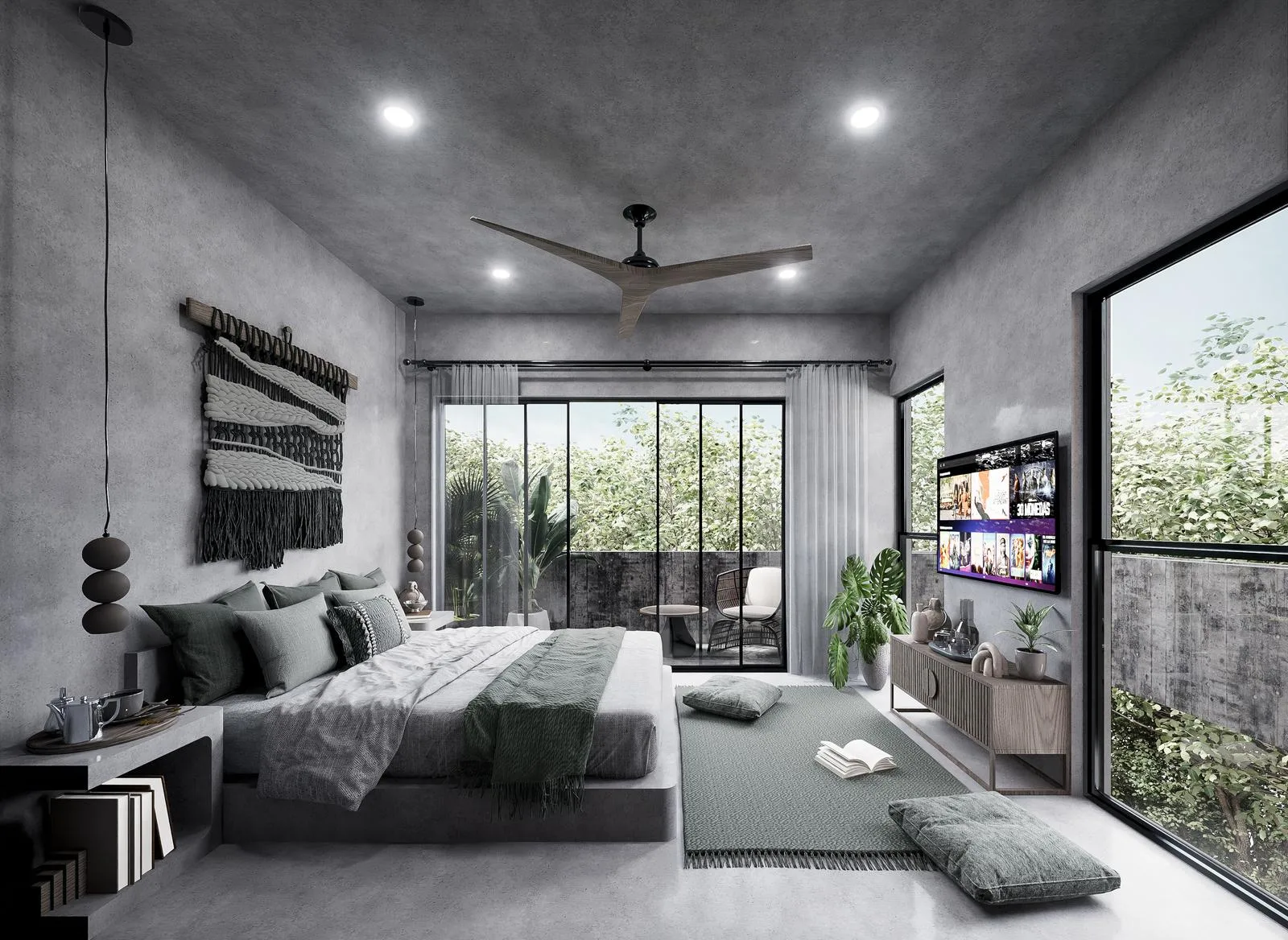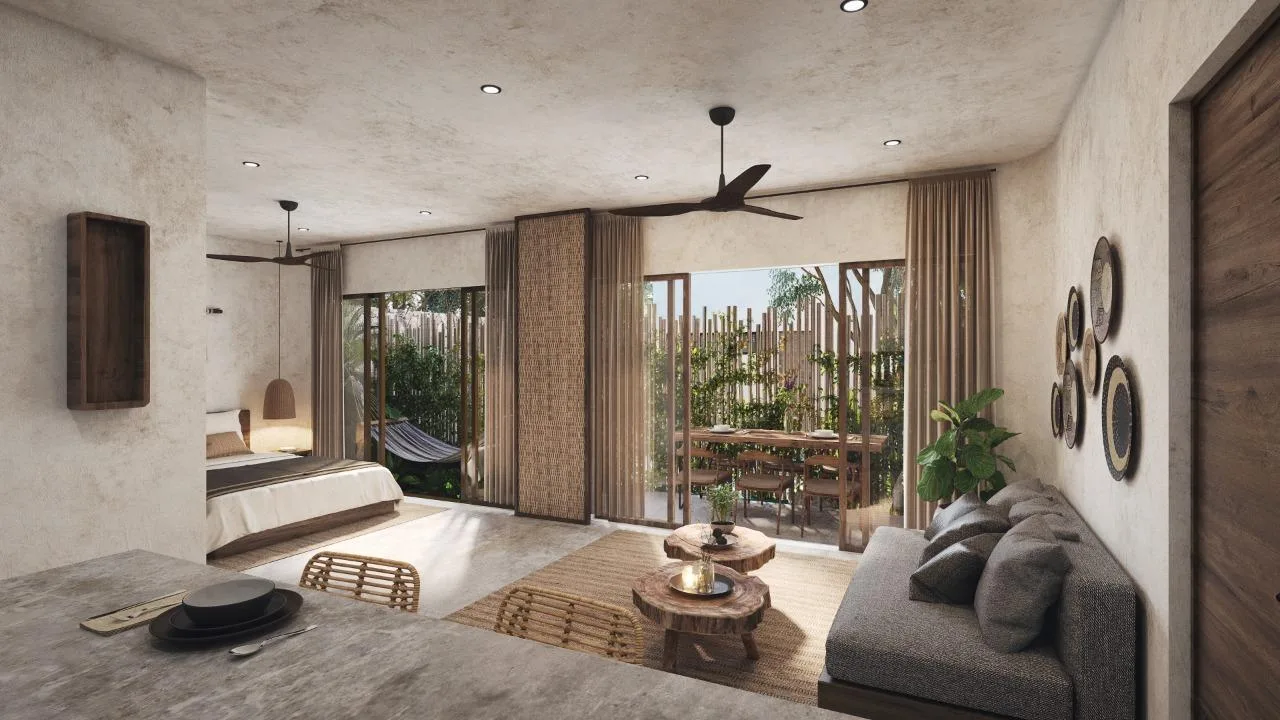 This 1-bedroom apartment spans 72. 8 square meters. It is designed to provide comfort and privacy while incorporating elements that connect with the natural environment.