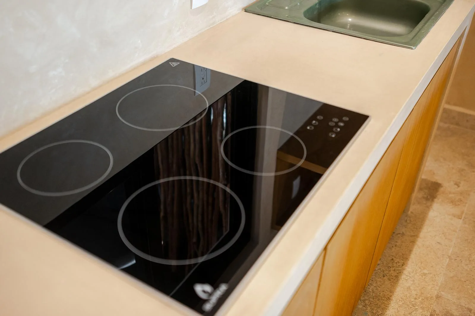 The residence features one bedroom, one full bathroom, an equipped kitchen, a living area, and a private terrace. A private plunge pool is included, and the unit is served by fiber-optic internet.