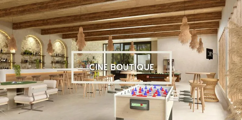 The property includes a swimming pool, dedicated hammock and lounge areas, a firepit, a yoga zone, and a boutique cinema. For recreation and fitness, there is a coworking space, a jungle gym, calisthenics bars, a pet zone, and a jogging track.