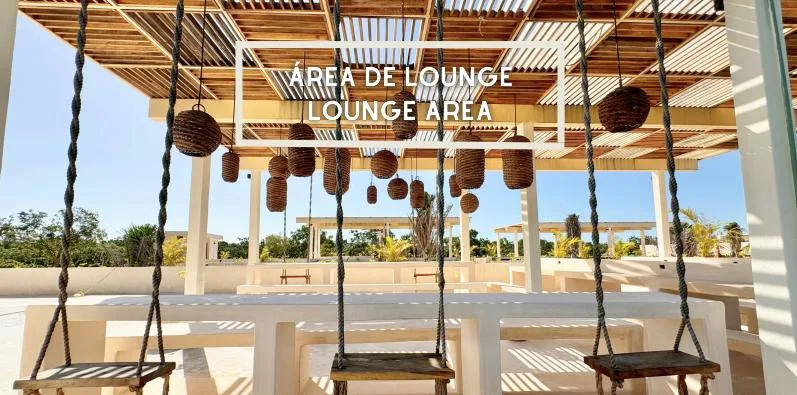 This 100-square-meter condominium in Tulum features one bedroom and one bathroom. The layout provides distinct spaces for living, working, and relaxation.