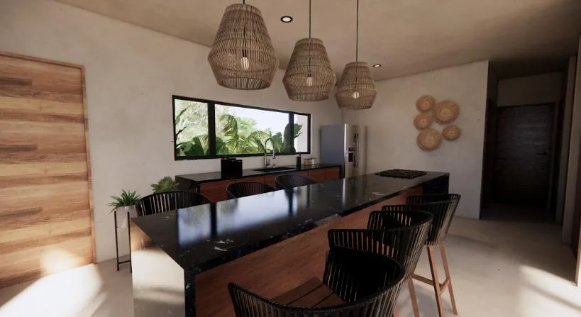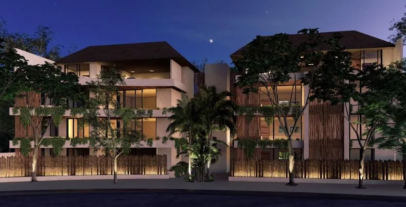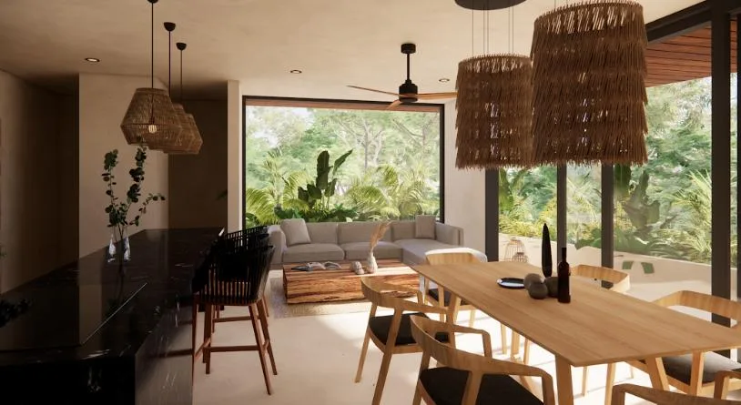 This 107 m² apartment is located in Tulum, set within a natural environment that blends modern living with jungle surroundings.