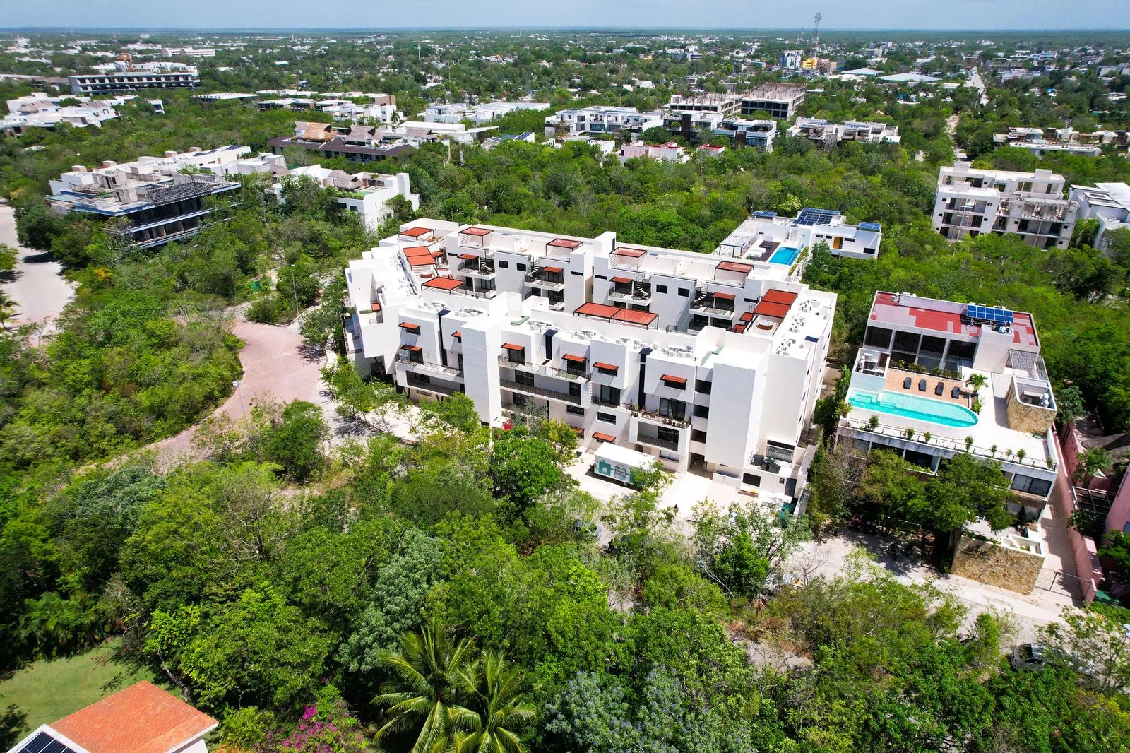 This exclusive 107. 05 square meter apartment in Tulum offers comfort, privacy, and a relaxed lifestyle. It features two bedrooms, two bathrooms, and a terrace for enjoying the Caribbean climate.
