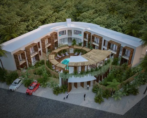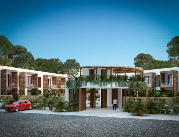 The development offers a central pool and sun deck. A rooftop bar provides spectacular views. A natural corridor connects with the essence of Tulum. There is a restaurant bar and reception for convenience. A gym with changing rooms is available for residents.