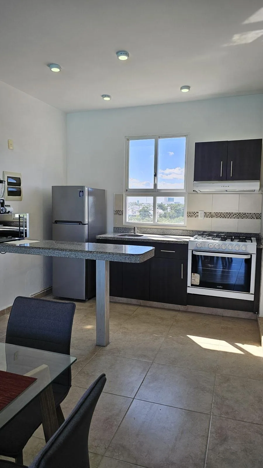 This apartment features 2 bedrooms and 2 full bathrooms, with furniture included. Situated on the fifth floor, it offers an exceptional view. The unit includes floor-to-ceiling closets, a laundry room, a living room, and a dining area. The kitchen is equipped with a granite countertop.