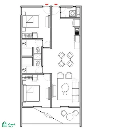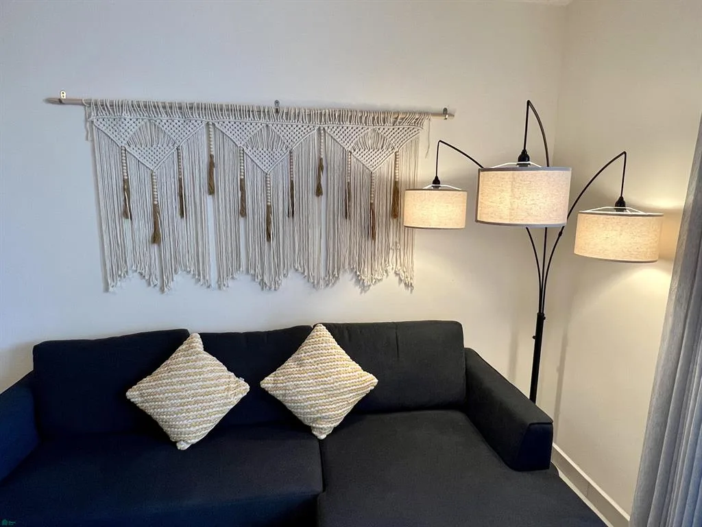The condominium features a lock-off design with two separate entrances. This layout allows for the rental of one bedroom with a bathroom, or the other section which includes a kitchen and living room.