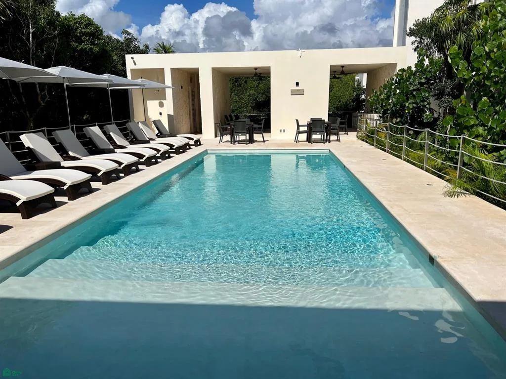 This fully furnished and equipped 2-bedroom, 2-bathroom condominium is located in the Santamar development in Punta Sur Akumal. The property is just steps from a secluded beach with private access to the Caribbean Sea.