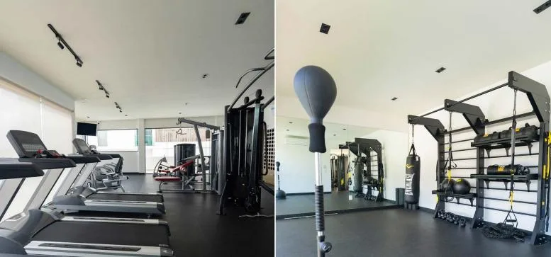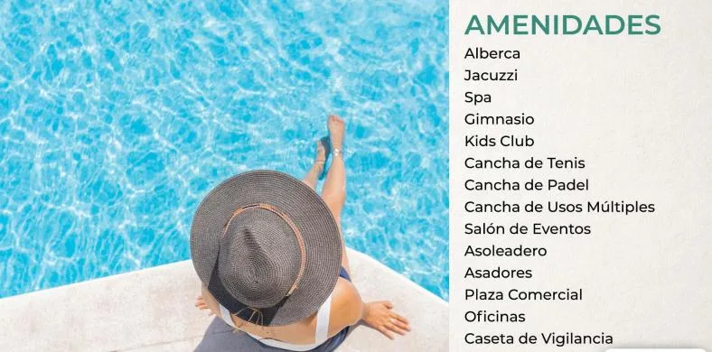 The residence includes a variety of amenities such as a swimming pool, jacuzzi, and spa facilities. There is a fully equipped gym, a kids' club, and sports courts for tennis, paddle tennis, and multi-use activities.