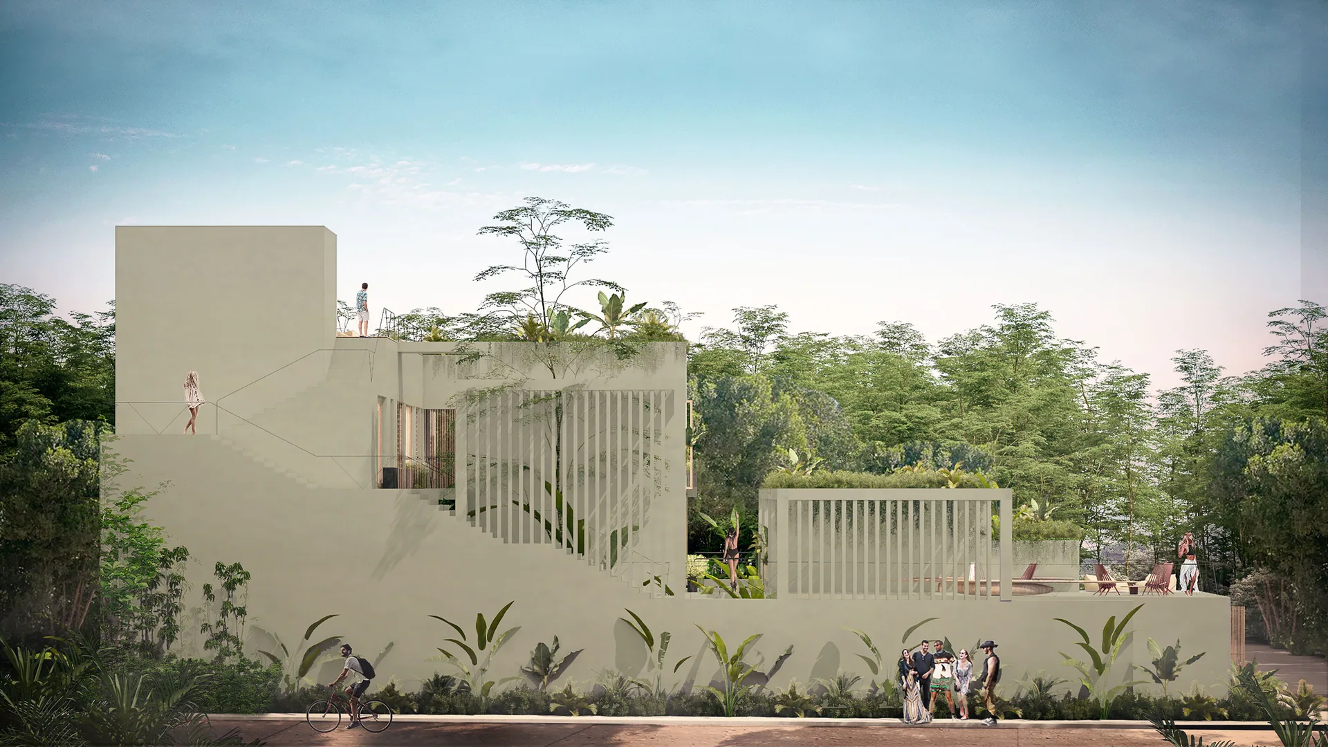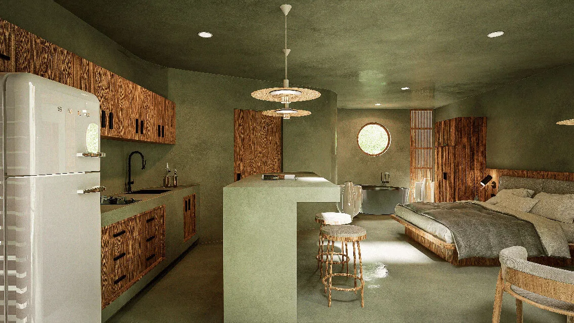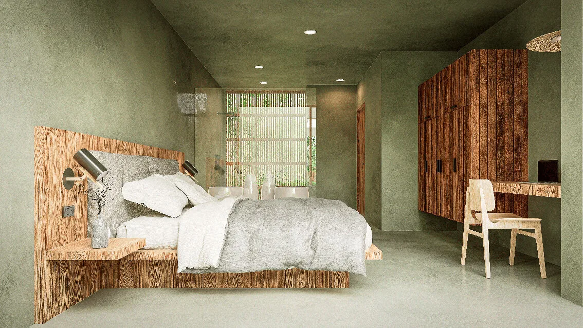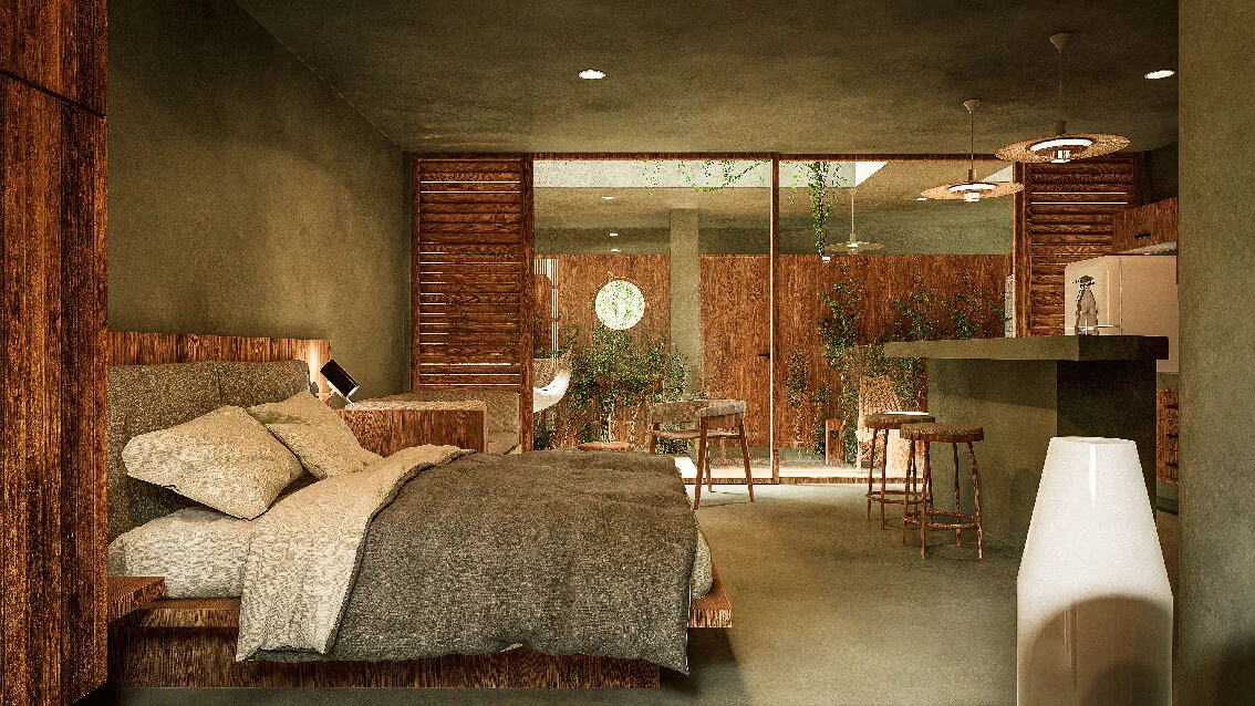 The development comprises only 14 residences, ensuring privacy and a close-knit community atmosphere. The architectural concept utilizes natural materials and warm textures within a timeless design, creating cozy spaces inspired by Tulum's local character.