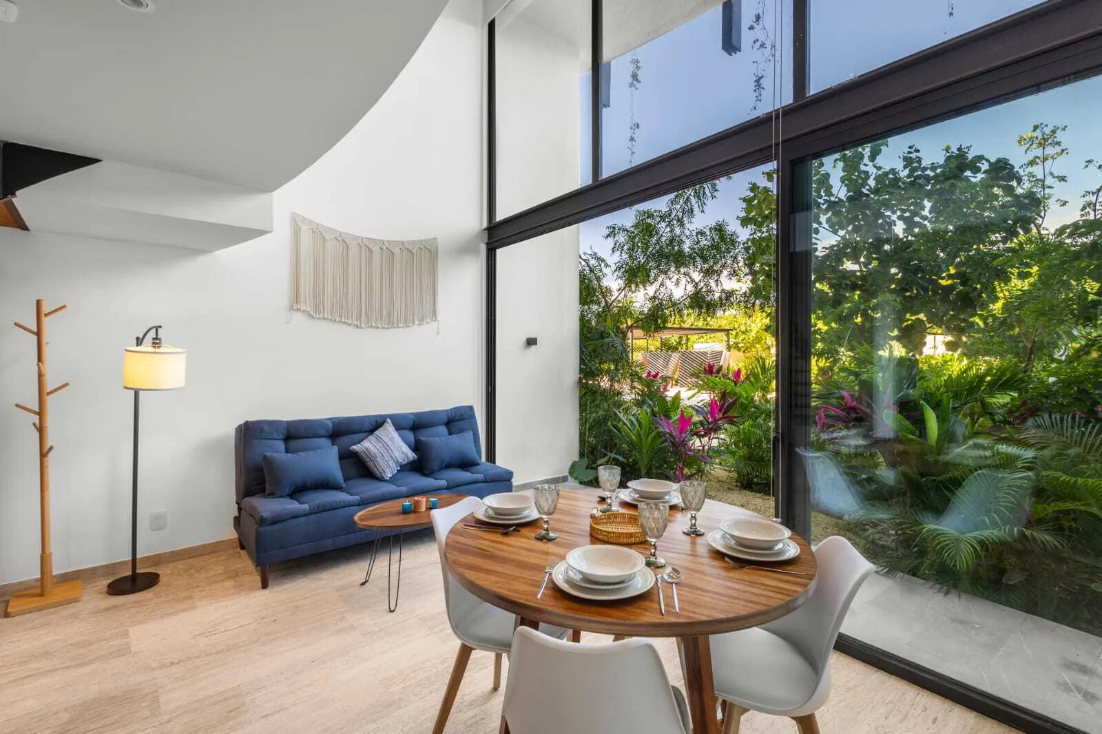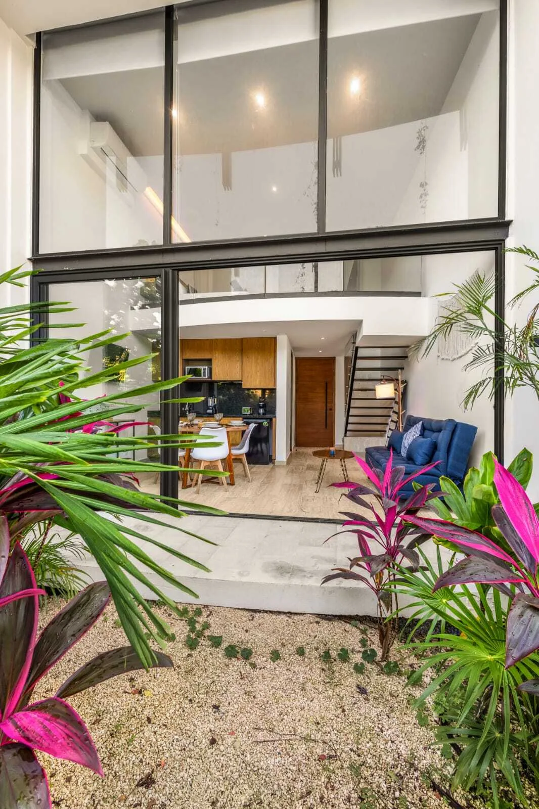 This contemporary 57 m² ground-floor loft is located within the Místiq Garden 2 residence in Playa del Carmen. It features a modern design and well-considered volumes. The bedroom is situated on an upper level, providing a natural and harmonious separation from the living space.