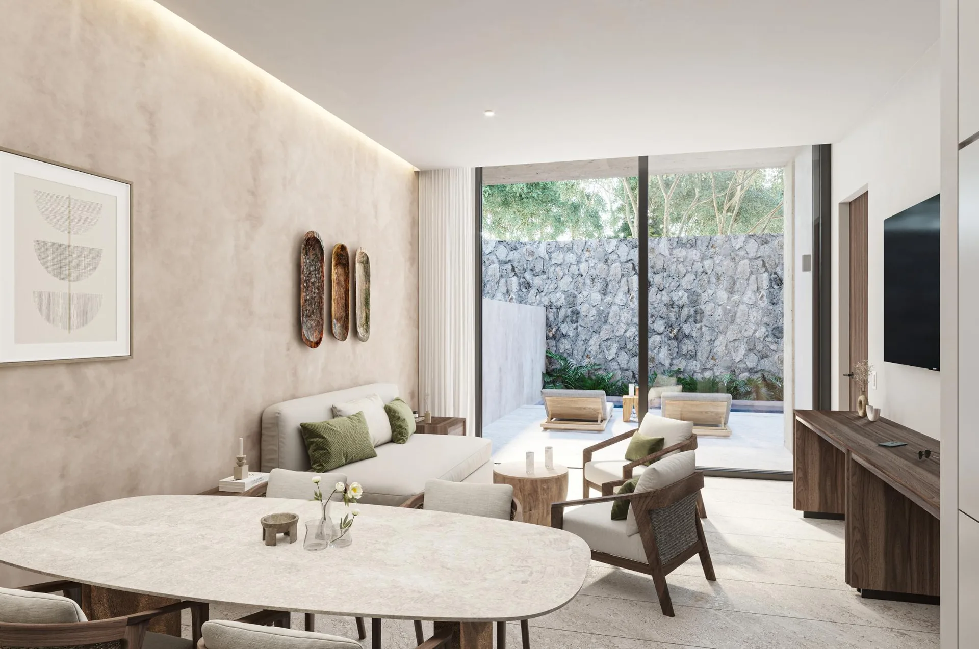 Every detail in this studio has been carefully selected to offer a sublime and uncomplicated living experience, where minimalist design meets the warmth of natural elements. The space flows organically, inviting relaxation and inspiration from the moment you cross the threshold. It captures the essence of the Tulum lifestyle, combining practicality with a high level of sophistication.