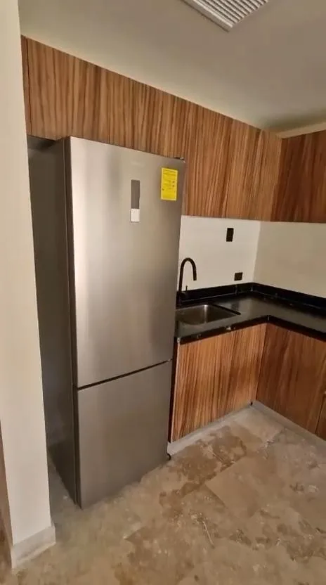 The apartment features a contemporary minimalist design with seamless integration between indoor and outdoor living areas. The main space combines the living and kitchen areas, which flow directly into the private garden. The bedroom includes access to a full bathroom. Both the kitchen and bathroom are ready for customization with finishes and designs to suit personal preferences.