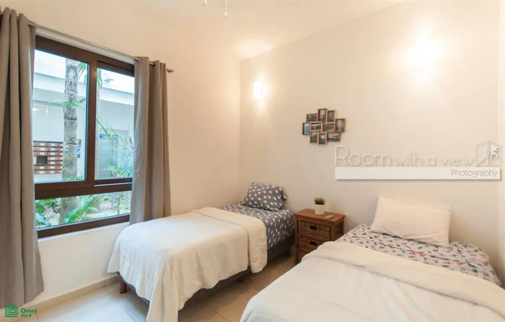 The residence features two bedrooms and two bathrooms. It offers an open floor plan that receives abundant natural light. The fully equipped kitchen includes premium appliances. Separate living and dining areas are provided, along with a laundry room containing a washer and dryer. Tile floors and high-quality finishes are found throughout. The condo is fully furnished and equipped with ceiling fans and air conditioning. Each bedroom includes built-in closets and an en suite bathroom.