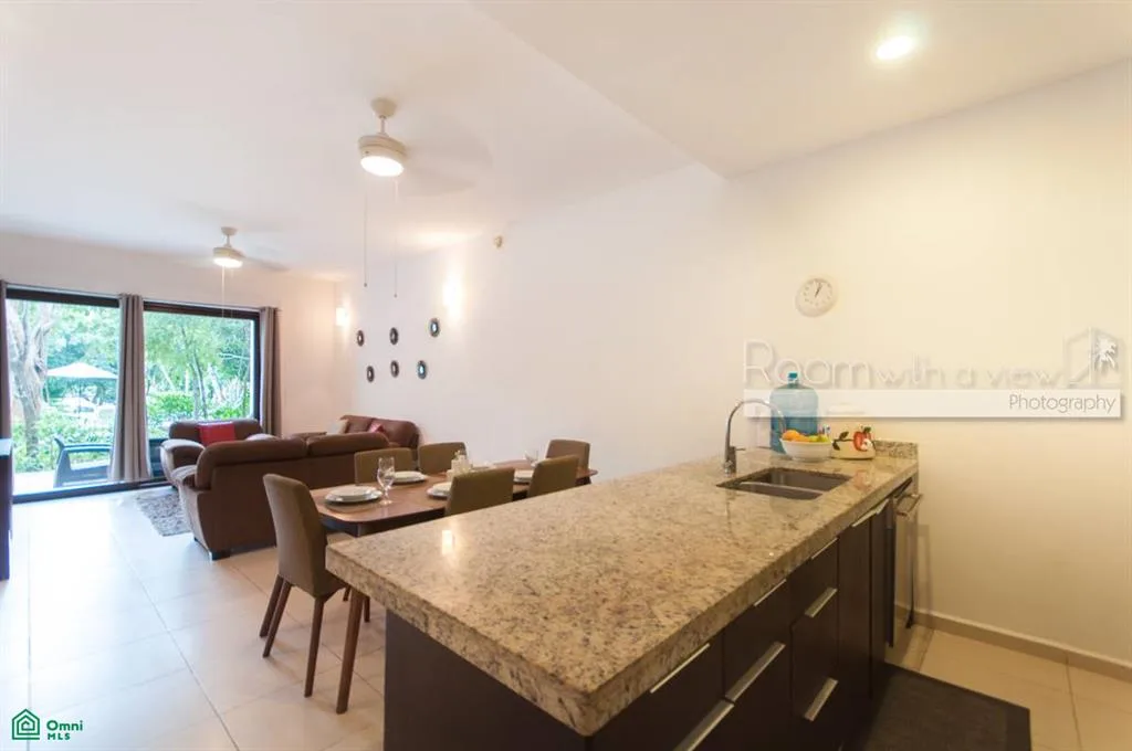 This garden-level condo is located in a residential community within a 717-acre golf resort in Akumal, situated in the Riviera Maya approximately halfway between Playa del Carmen and Tulum, and a short distance from the Caribbean coast.