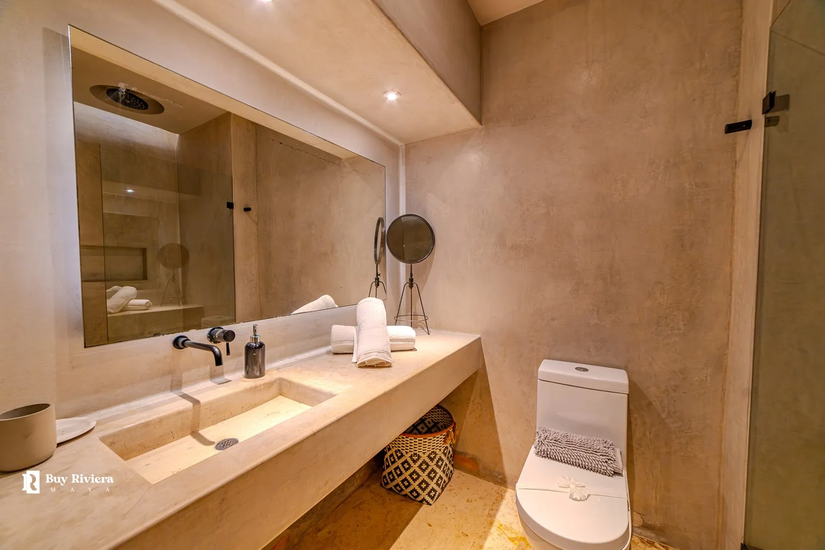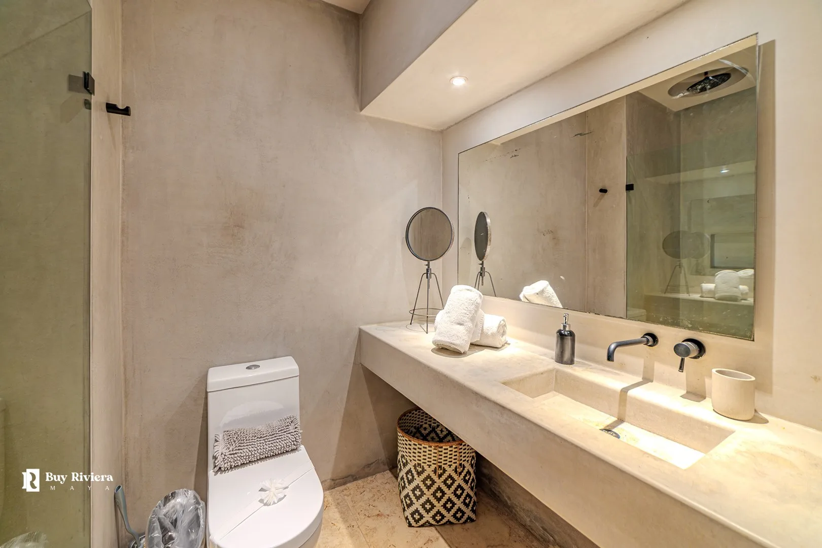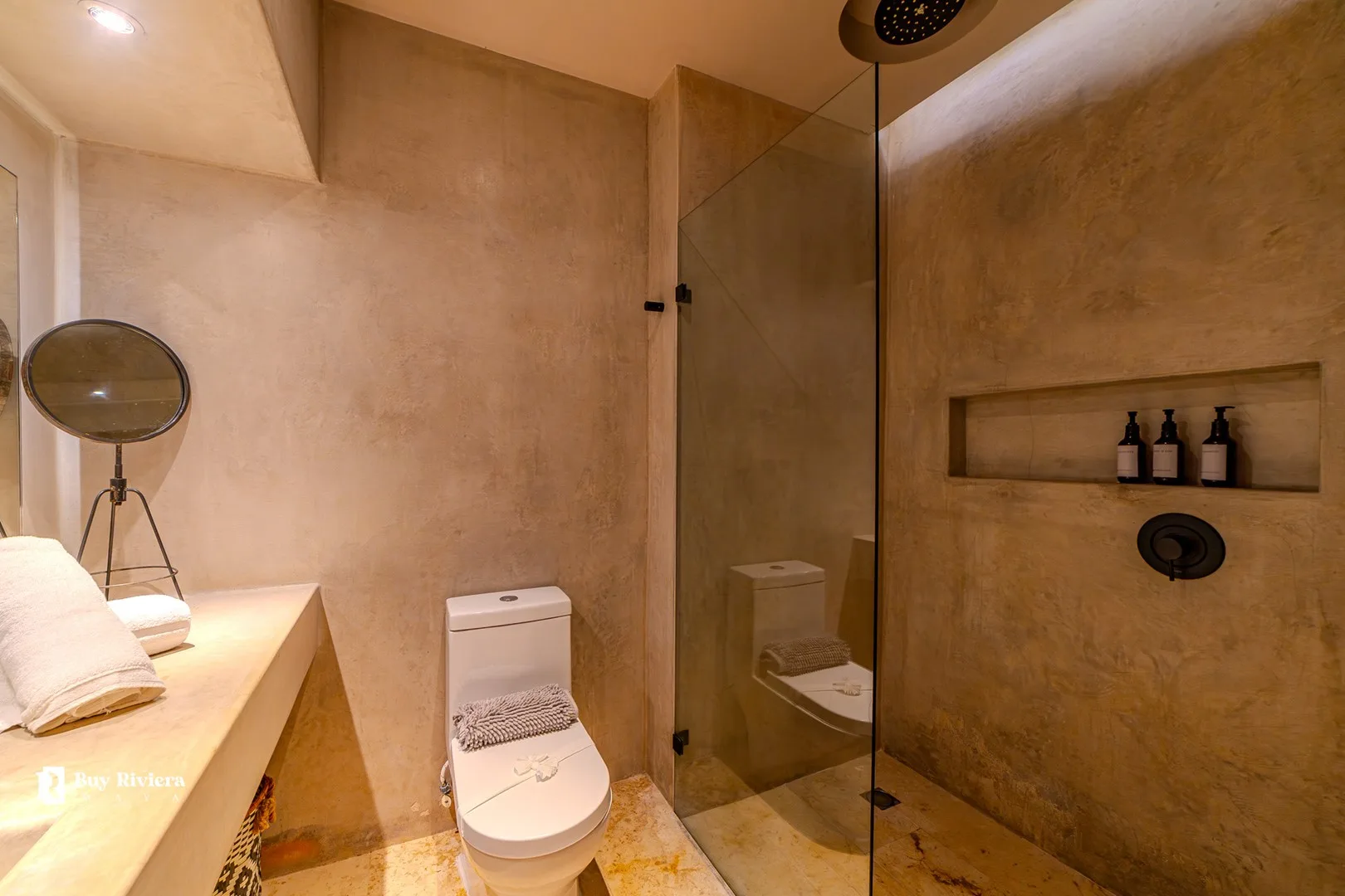 Welcome to Condo 104 at Sky Jungle, a ground-floor sanctuary where modern architecture meets the wild beauty of Tulum’s sacred jungle. This 2-bedroom residence is nestled within the eco-community of Luum Zama. Floor-to-ceiling glass frames the green surroundings, while natural materials like chukum, stone, and wood ground the space in warmth and authenticity.