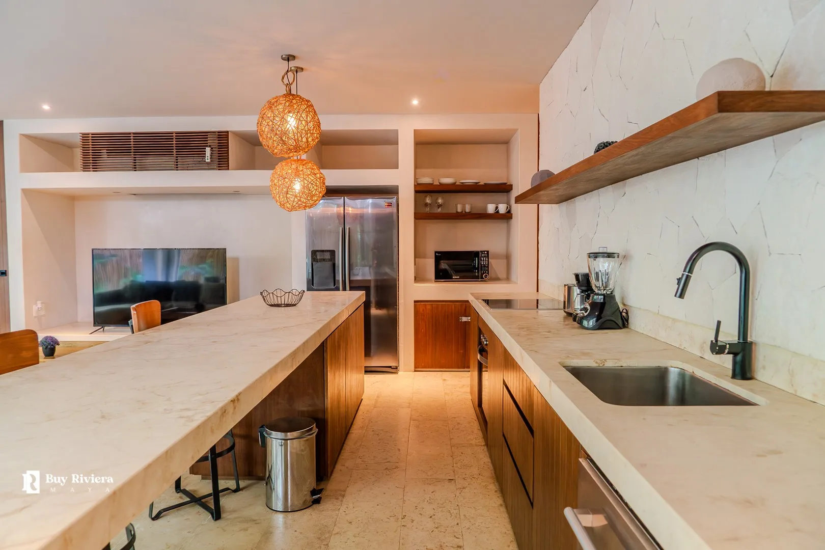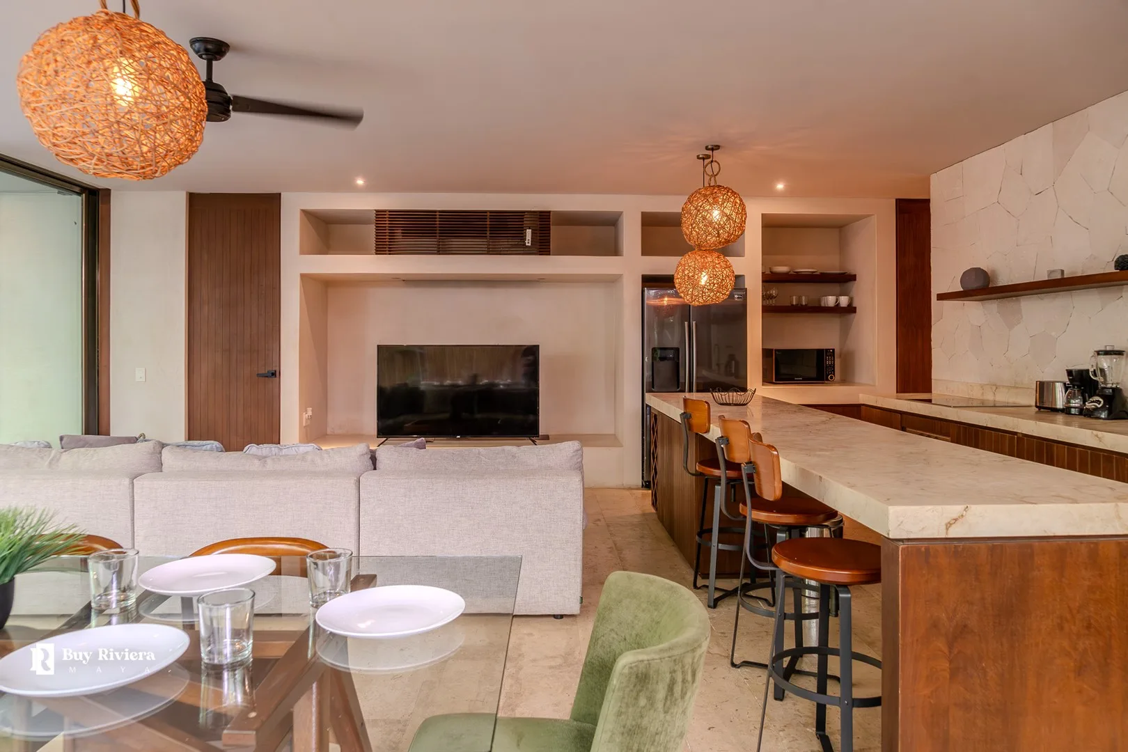 As part of Sky Jungle, you’ll enjoy access to Luum Zama’s holistic amenities, which include a yoga palapa, jungle trails, and wellness spaces. The condo includes assigned parking and comes furnished and decorated.