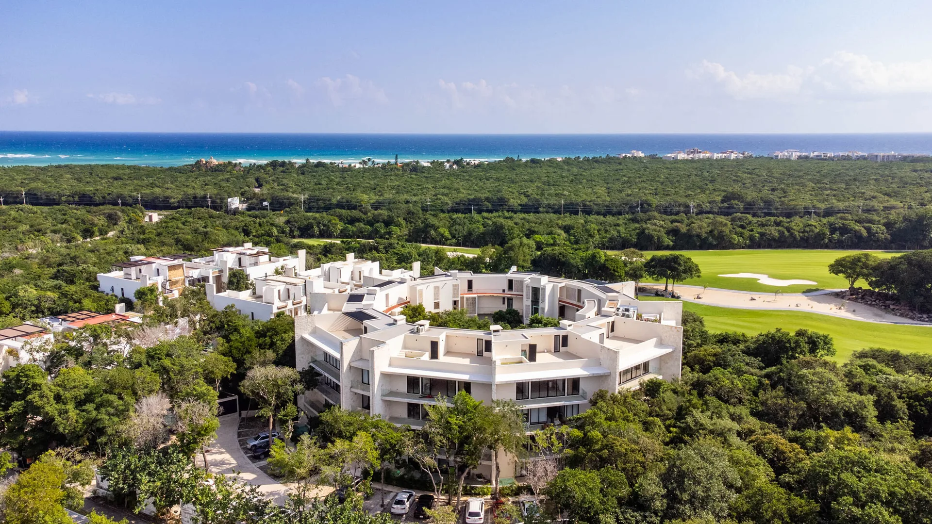 The building boasts three soaking pools, a lap pool, a running track, a gym, and a movie theatre. Tulum Country Club offers amenities including a PGA tournament golf course, several restaurants, a market, a spa, a gym, a pilates studio, a kid’s club, a teen club, co-working spaces, a juice bar, and a veterinarian.