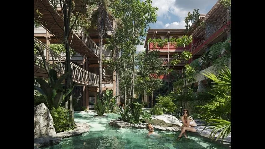 This concept of "Hotel Residences" offers a comprehensive luxury experience with premium amenities including a private Beach Club, a distinctive spa center, swimming pools, a rooftop with an infinity pool, gourmet restaurants, a fitness center, yoga zones, 24/7 Concierge service, and a high level of security. The project blends the mystique of the jungle with a cosmopolitan and eclectic design.