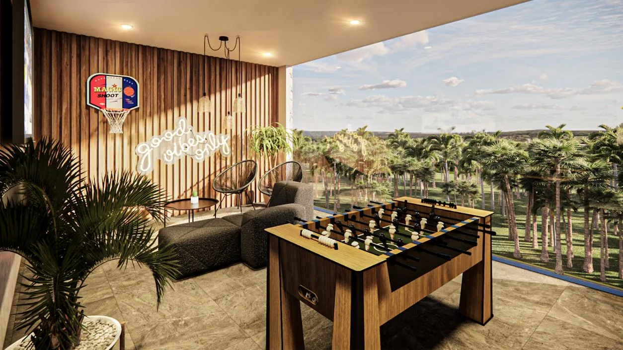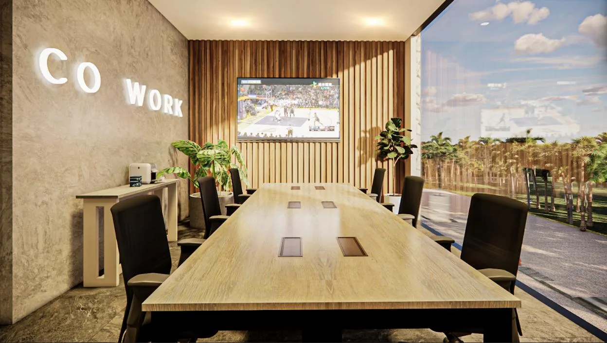 Residents have access to building amenities including a rooftop with swimming pools, a fully equipped gym, a coworking space, a play area, a spa, sun loungers, a fire pit, a sky bar, and an elevator. The building provides 24/7 security with CCTV surveillance.