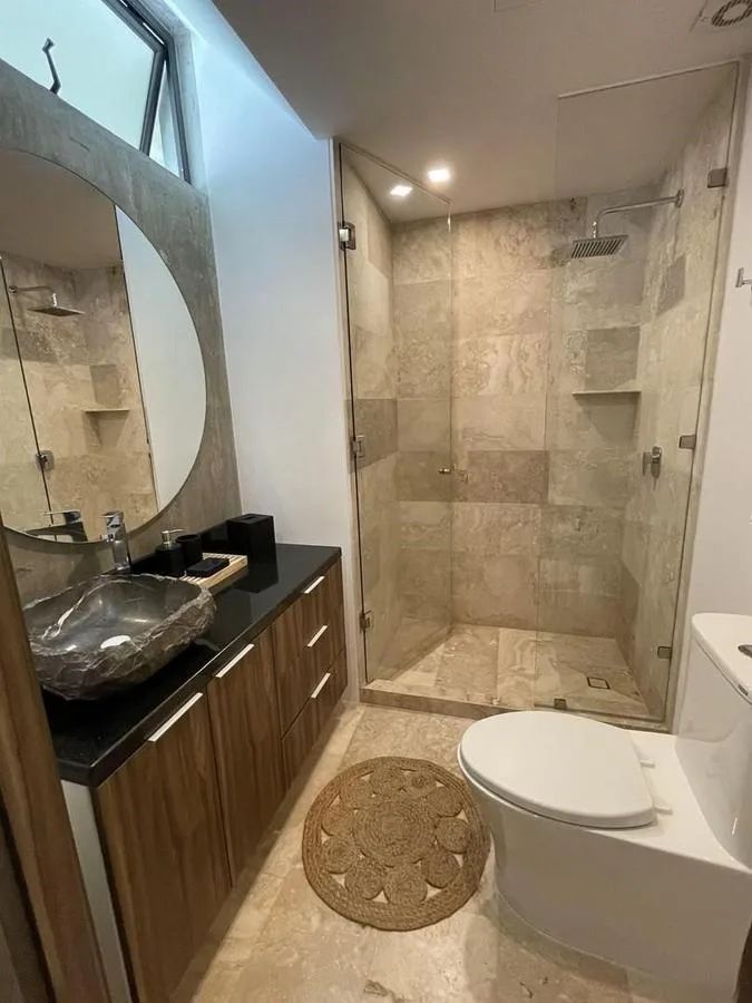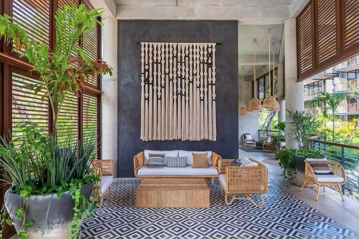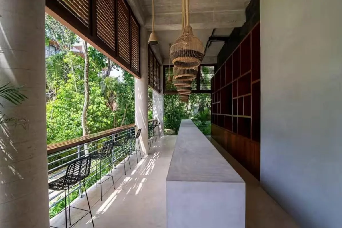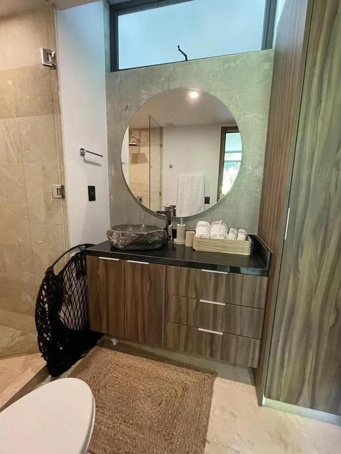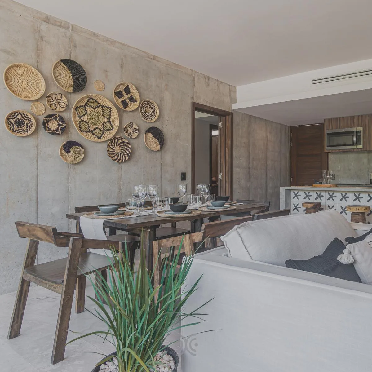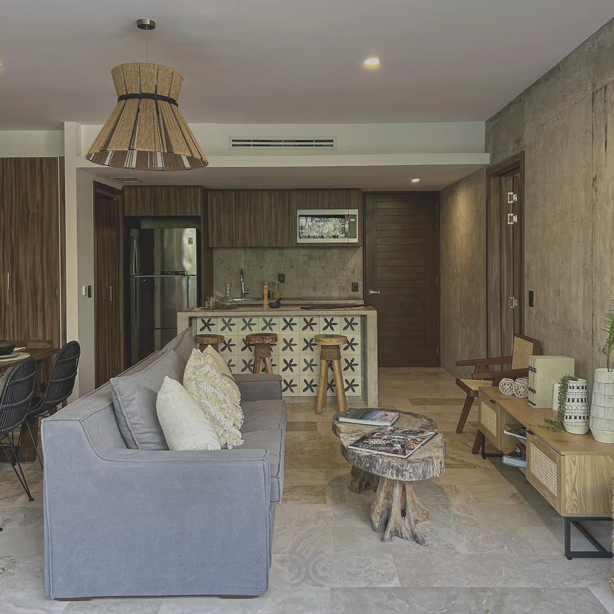 This luxury apartment is situated on Coba Avenue in Tulum, just five minutes from the beach and hotel zone. It is surrounded by nature and high-level services.
