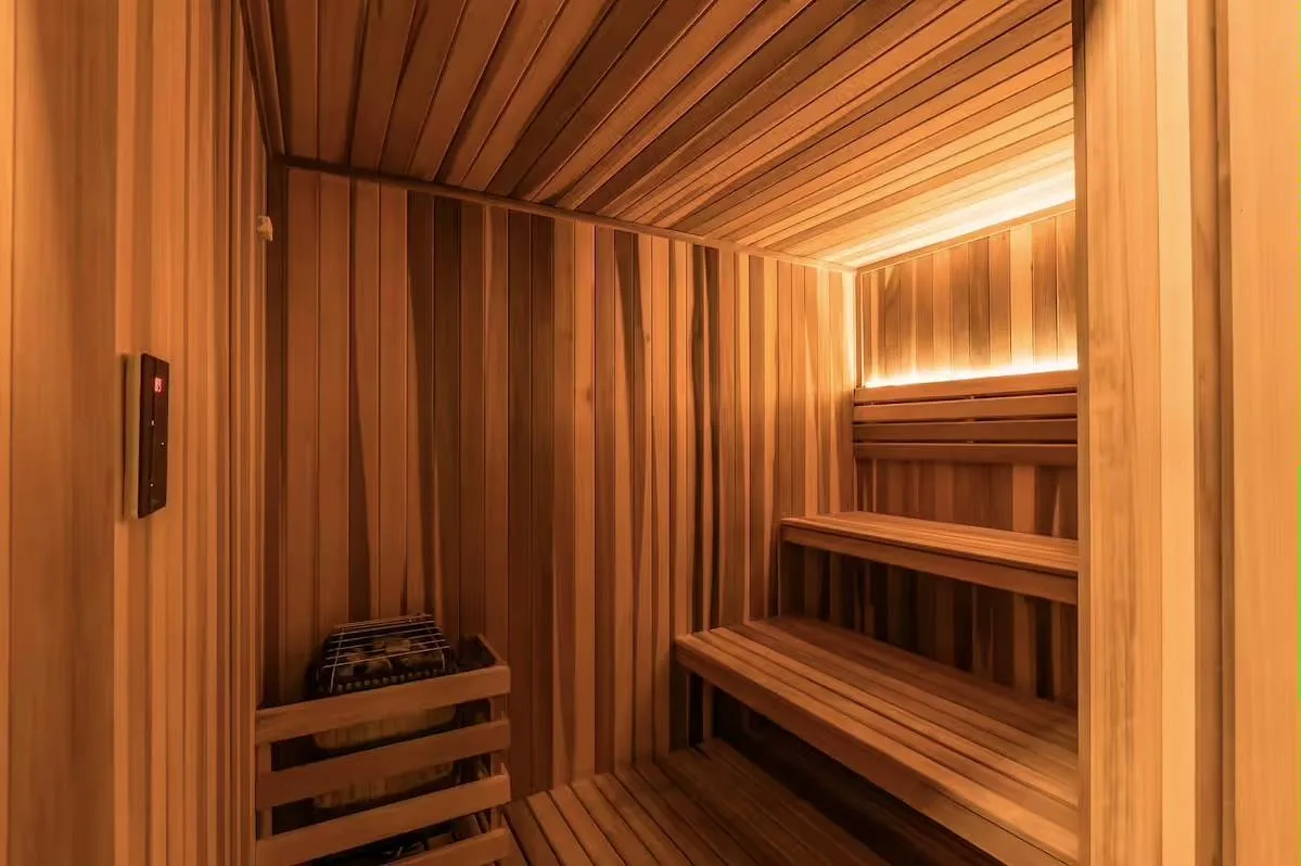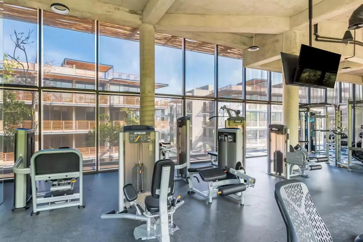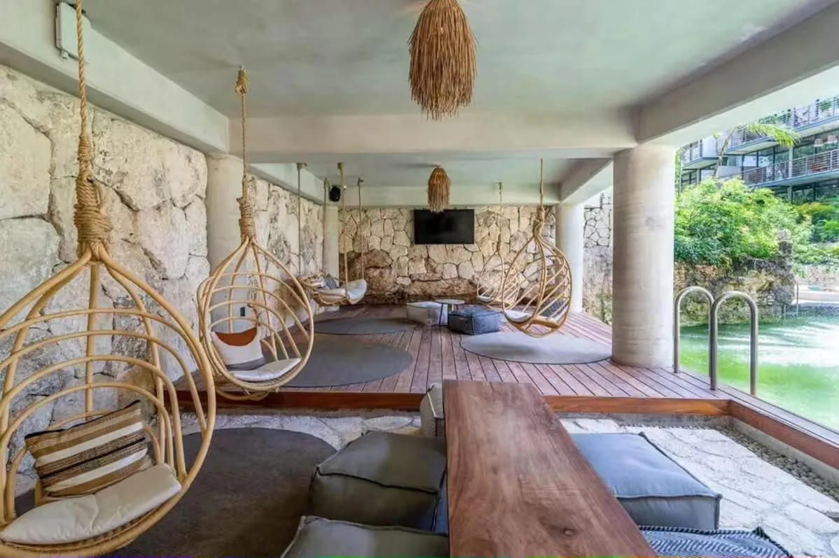 The residence features a private cenote, a central swimming pool and jacuzzis, a cabin area and hammock zone, green areas, terraces and fire pits, and a Spa Wellness Center. Additional amenities include a gym, a spinning salon, a zen garden and yoga space, a lounge bar and wine cellar, a reading room and cafe, and concierge service. The building provides parking and 24-hour security with controlled access.