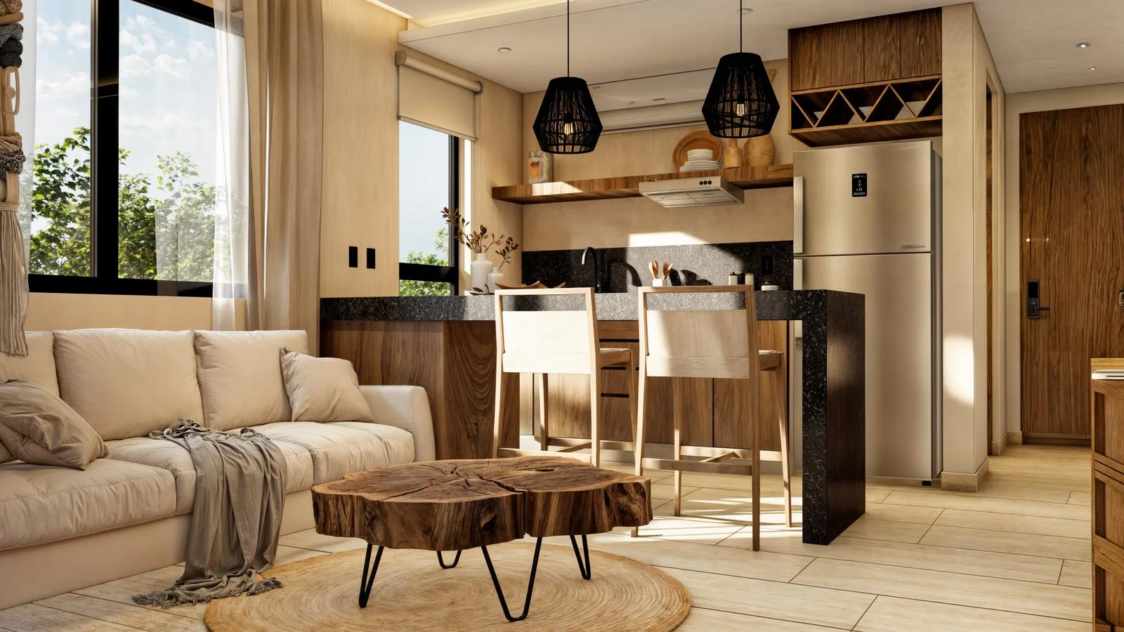 This 52 m² apartment is designed to provide a modern and comfortable living experience.