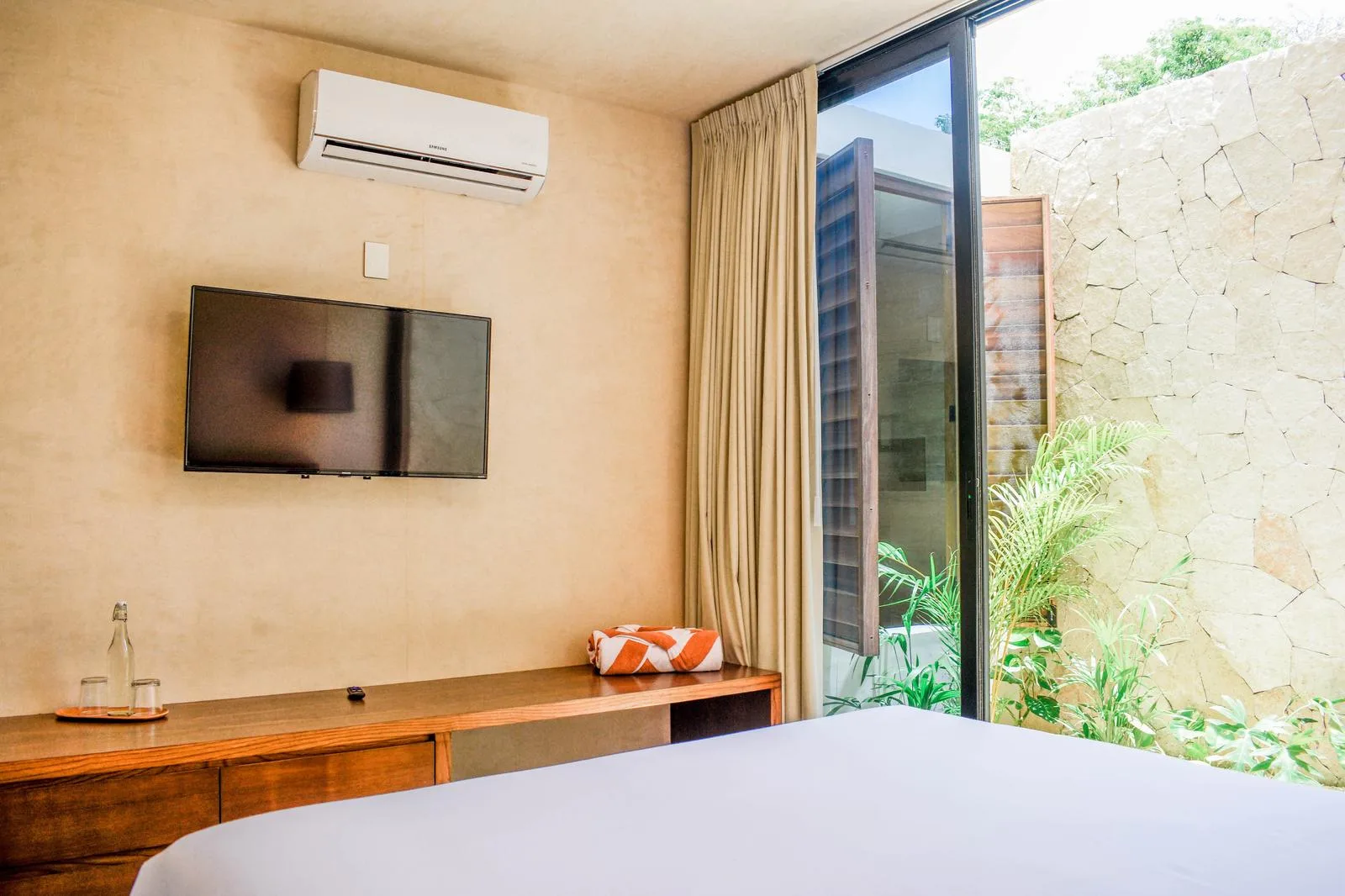 This modern, move-in ready, and fully furnished apartment features an intelligent layout with high-quality finishes. The unit includes one bedroom equipped with a queen-size bed, a living-dining area with a sofa bed, a fully equipped kitchen, one full bathroom, and two private terraces that allow for enjoyment of the natural surroundings.