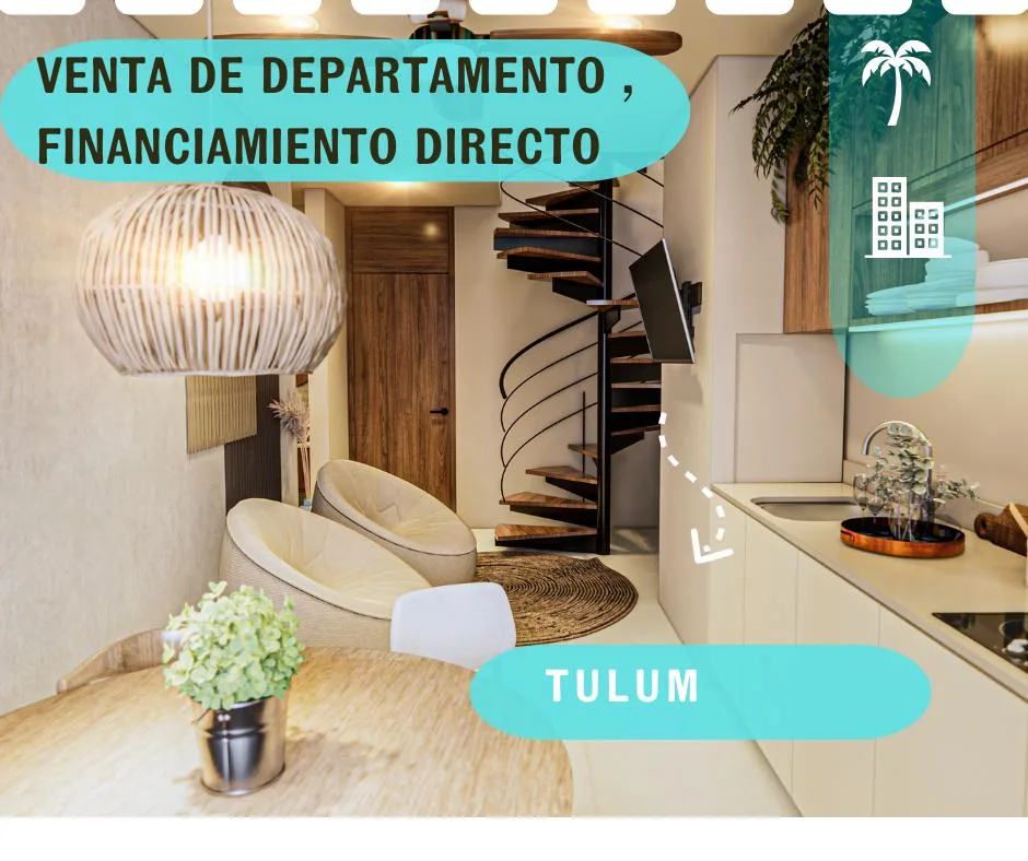 This cozy one-bedroom, one-bathroom apartment offers a unique living experience within a modern environment set in nature. It is situated in a high-growth area of the Riviera Maya.
