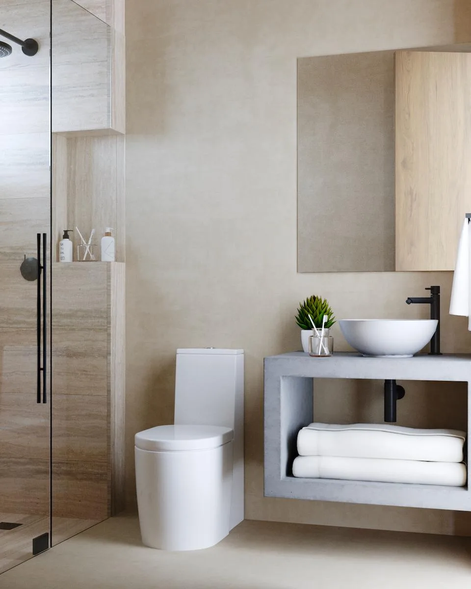 The one-bedroom model offers 57. 37 square meters total, with one bedroom, an integrated kitchen, a living room, a full bathroom, a laundry area, and a terrace.