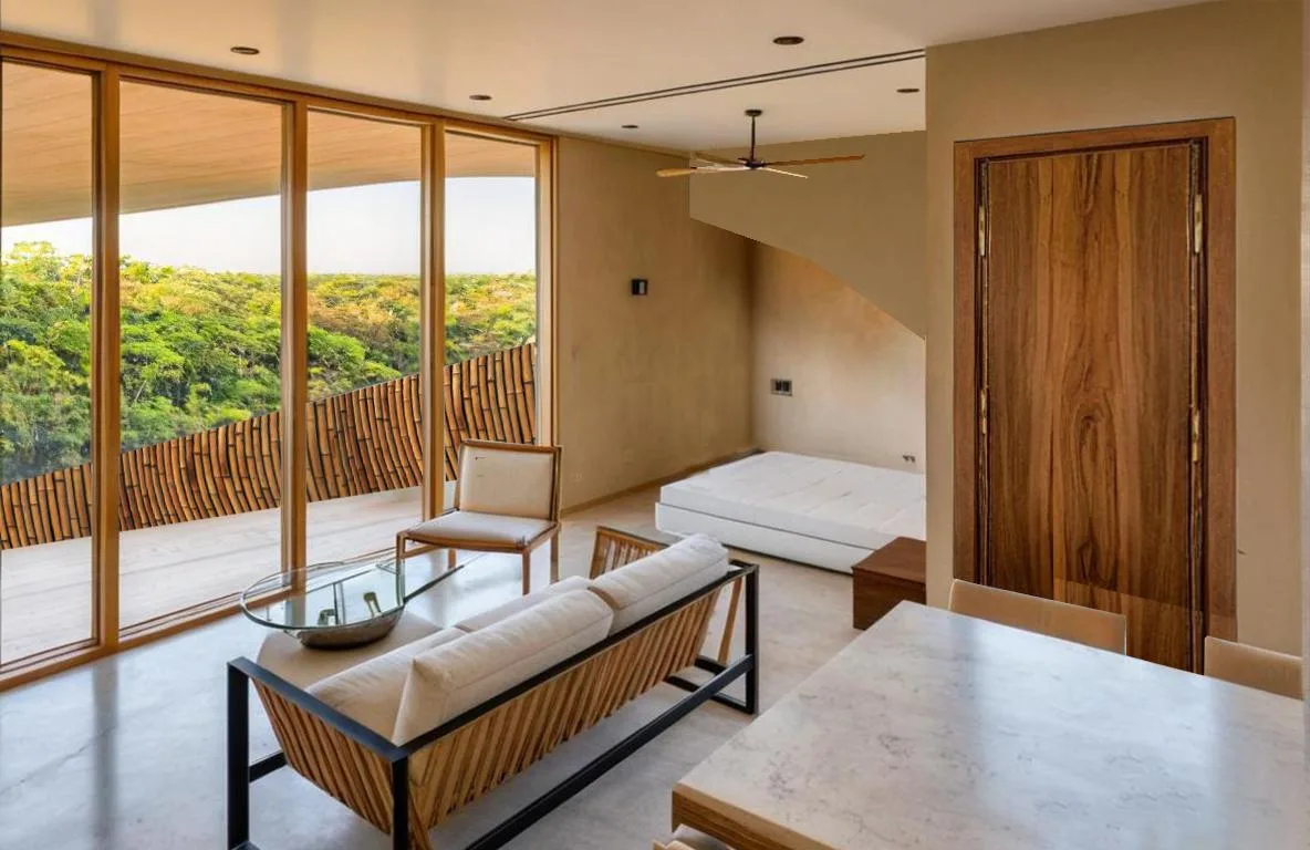 This modern 40. 61 square meter studio in Tulum offers a refined retreat. The unit features one bedroom and one bathroom.