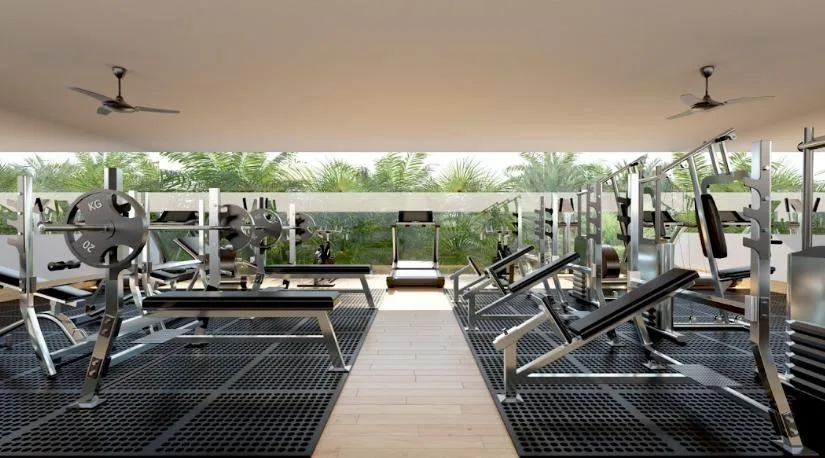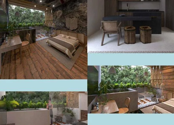 This apartment measures 32. 67 square meters and is located in an exclusive area of Tulum. It features one bedroom and one bathroom.