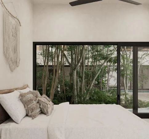 This apartment measures 32. 67 square meters and is located in an exclusive area of Tulum.
