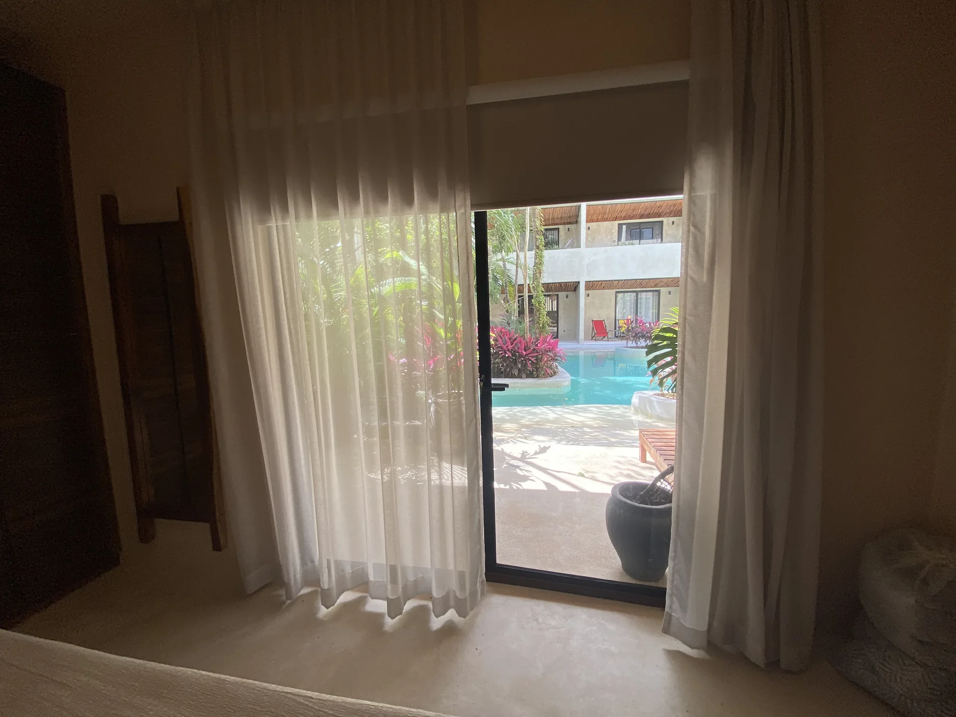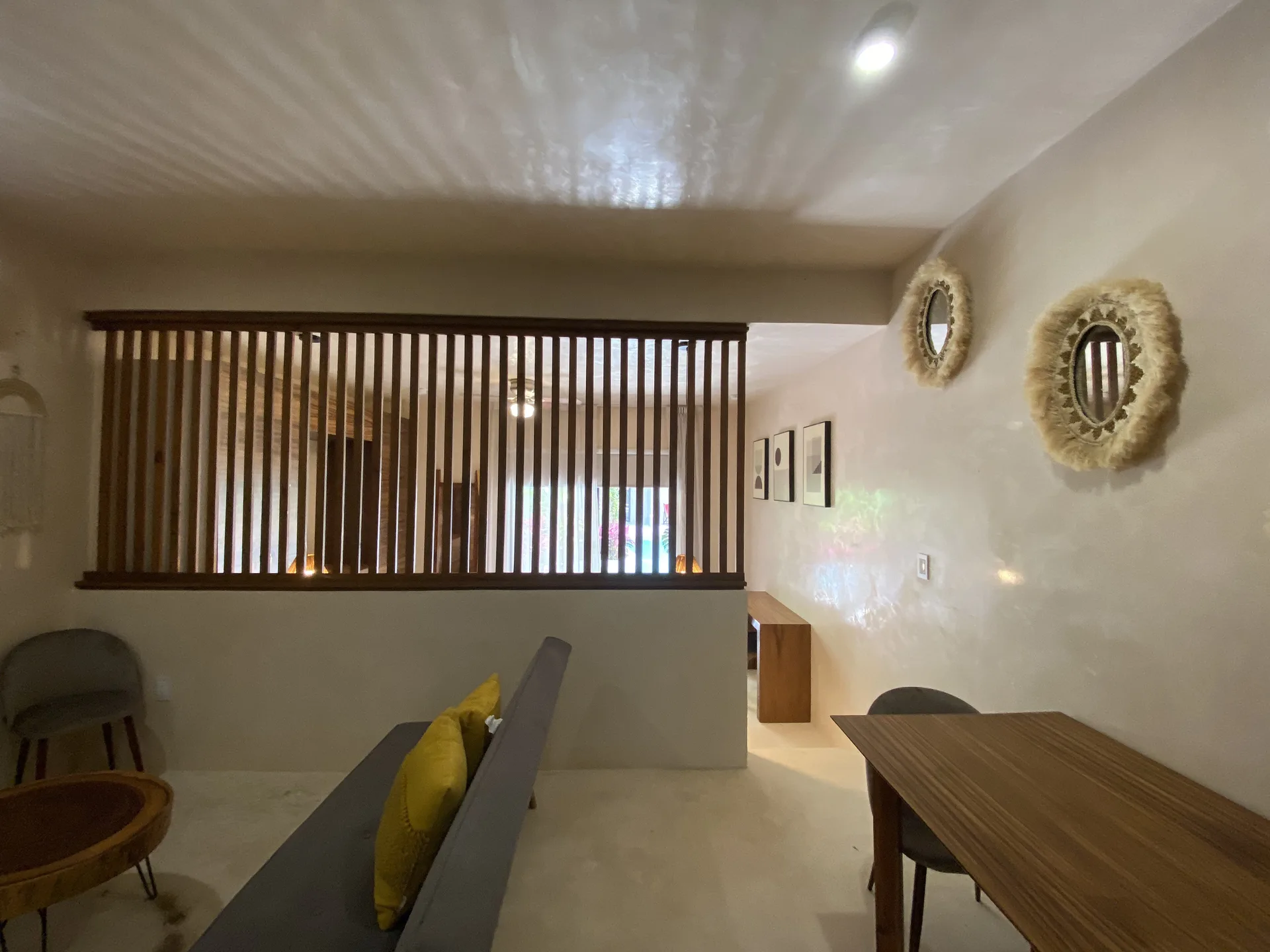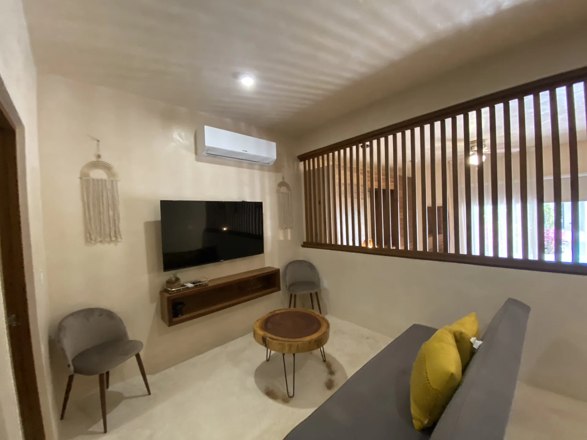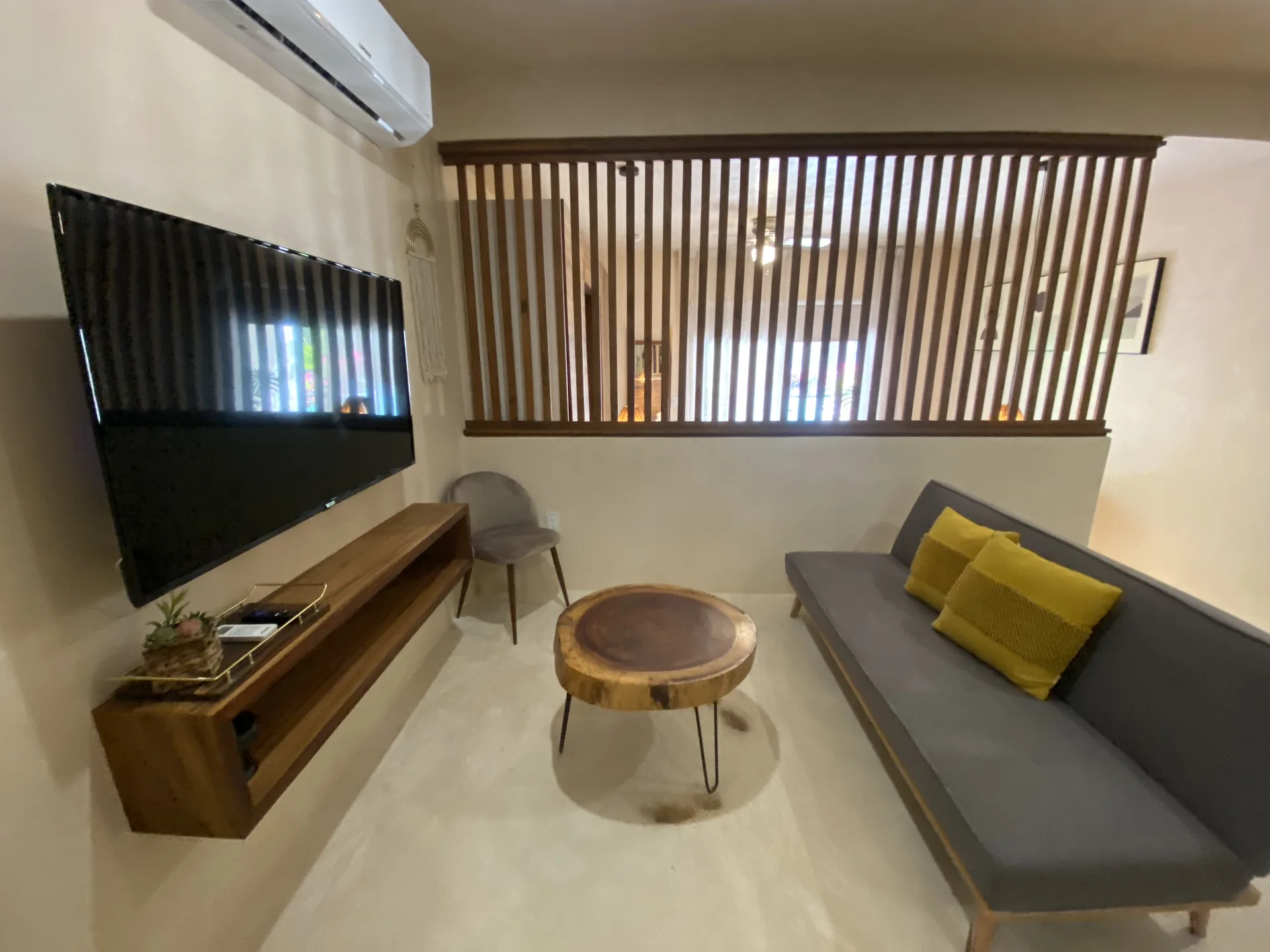 This one-bedroom apartment is fully furnished and features a unique poolside design. It is located within the Areia Phase 2 development in Tulum.