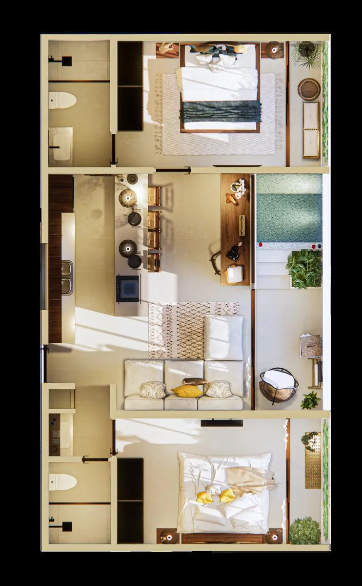 This 56. 22 square meter condo offers a functional and comfortable layout, ideal for both living and investment. It is designed to enjoy the warmth, beauty, and tranquility of Tulum.