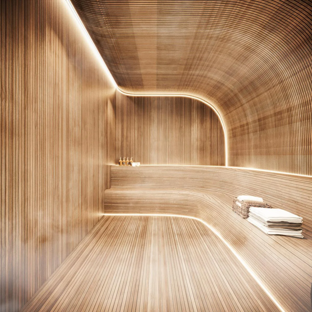 The development includes a pool on the ground floor and a rooftop pool with a bar. Amenities feature a spa, yoga area, sauna, cafeteria, gym, living room area, solarium, and green spaces. Additional facilities consist of a lobby, parking for bicycles, motorcycles, and cars, security, and an elevator.