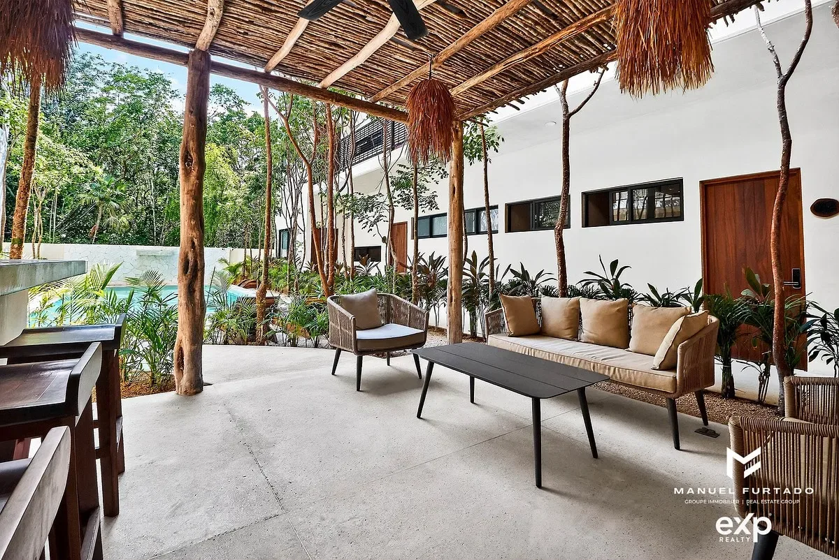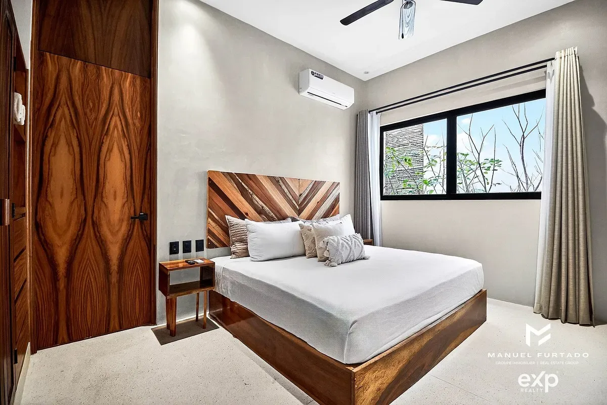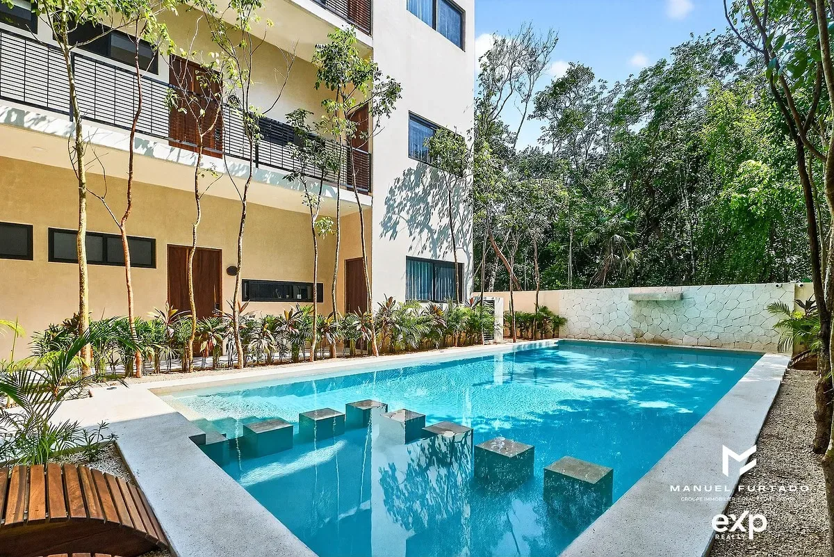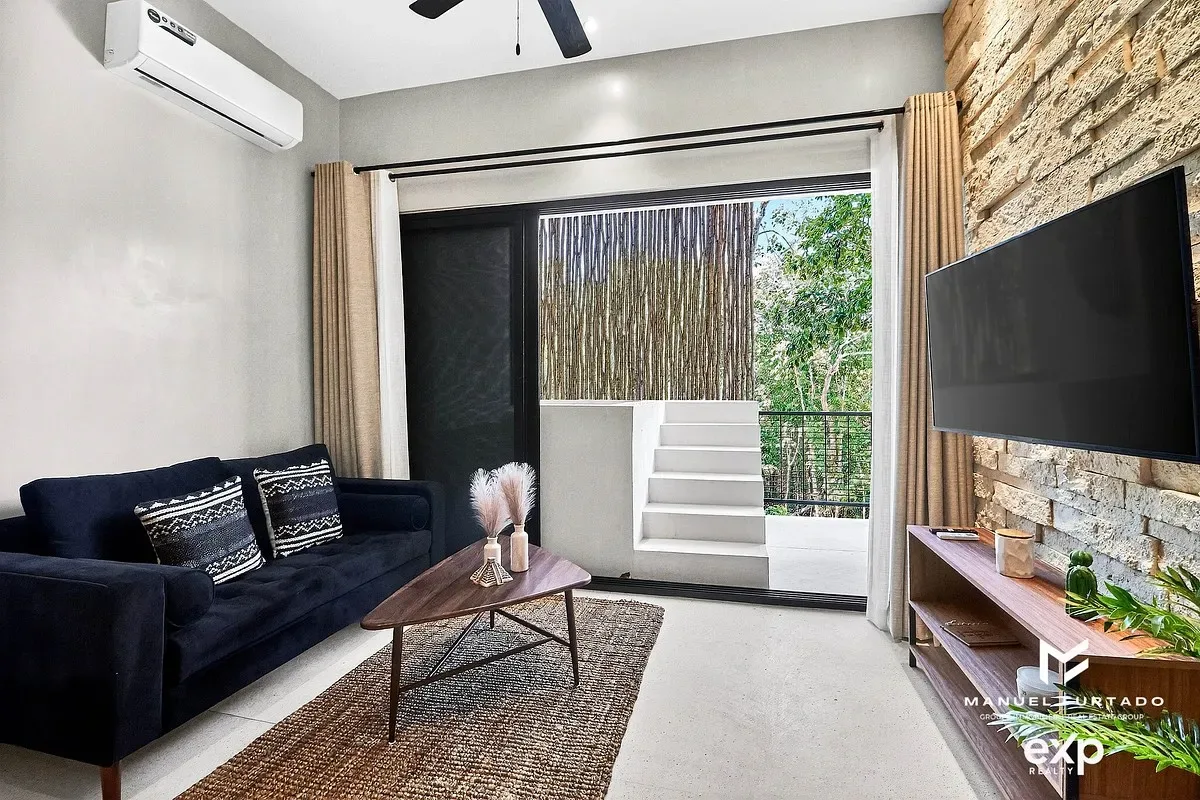 The condo is situated in the Aldea Zama community in Tulum. This area is located minutes from the beach and is surrounded by nature.