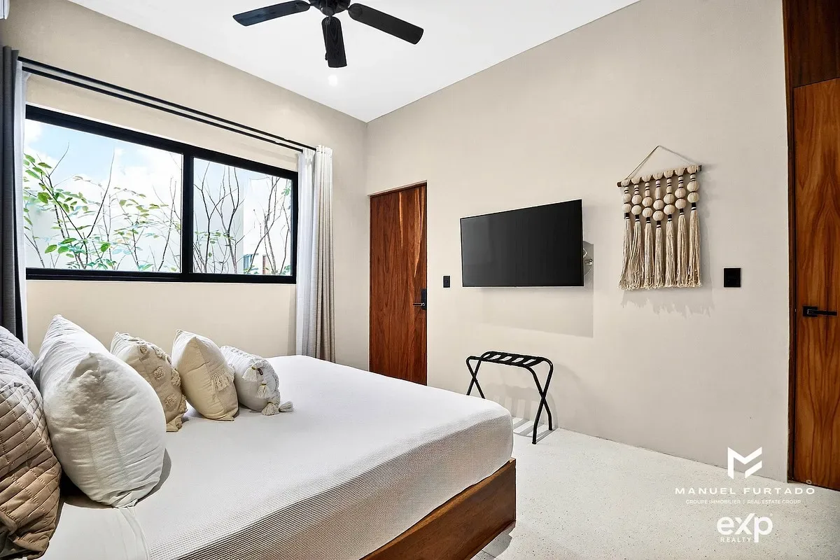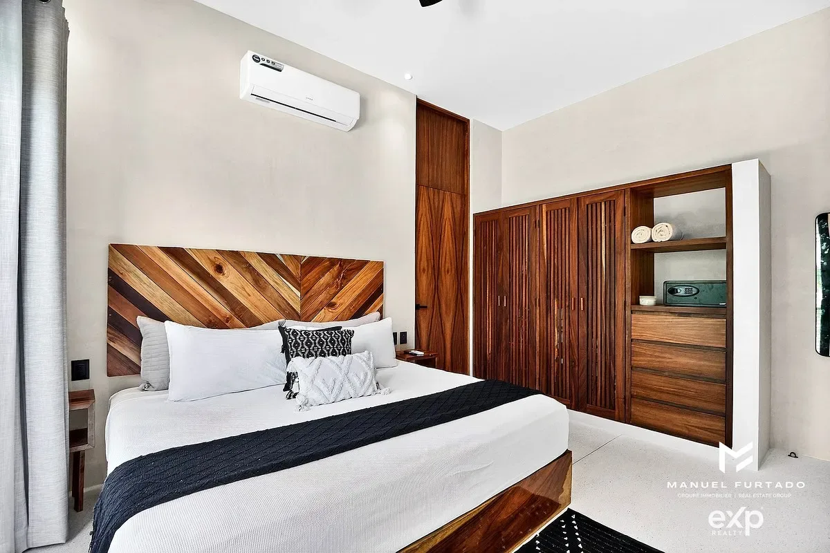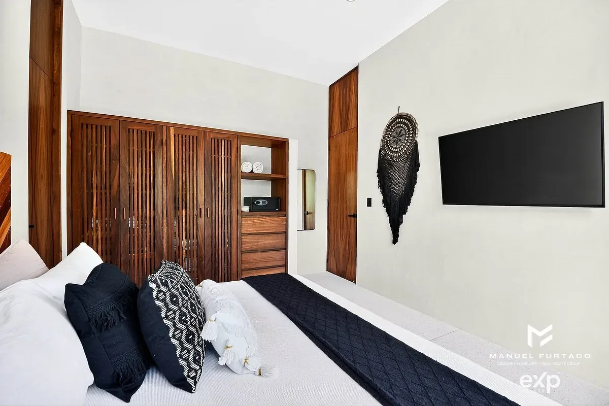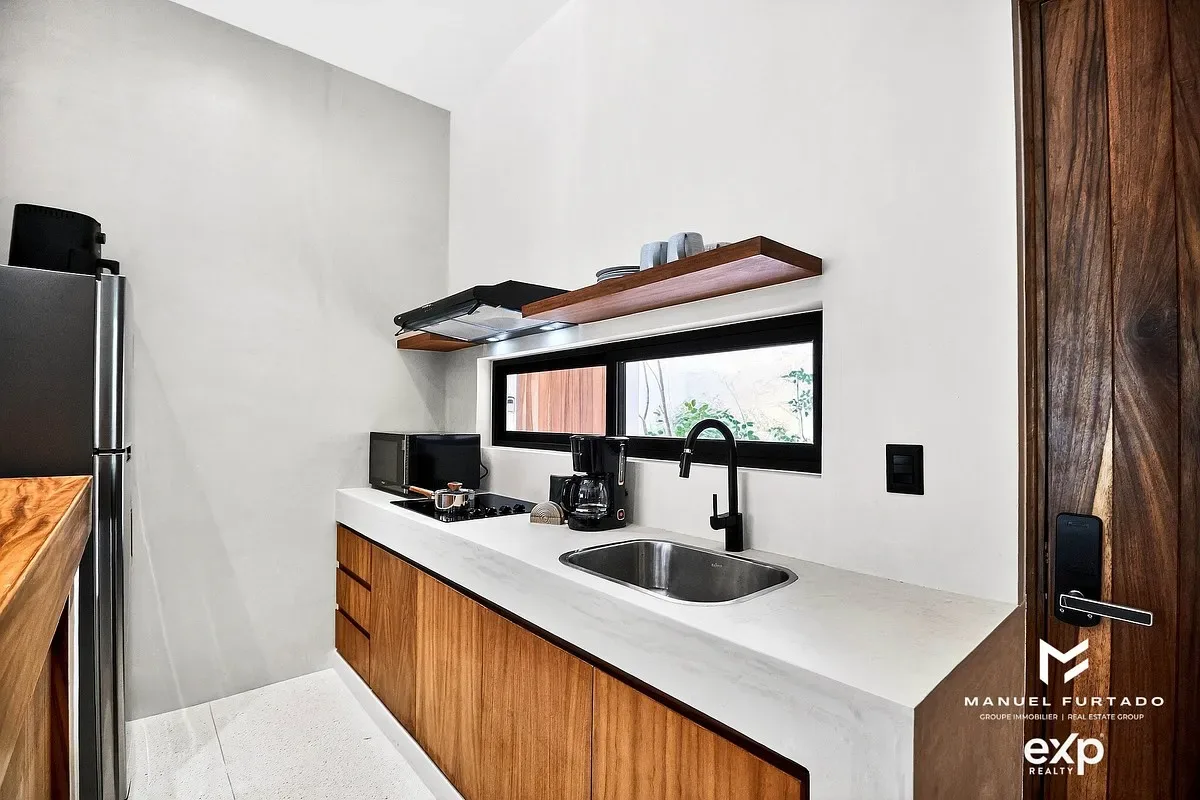 The condo is situated in the Aldea Zama community in Tulum. This area is located minutes from the beach and is surrounded by nature.