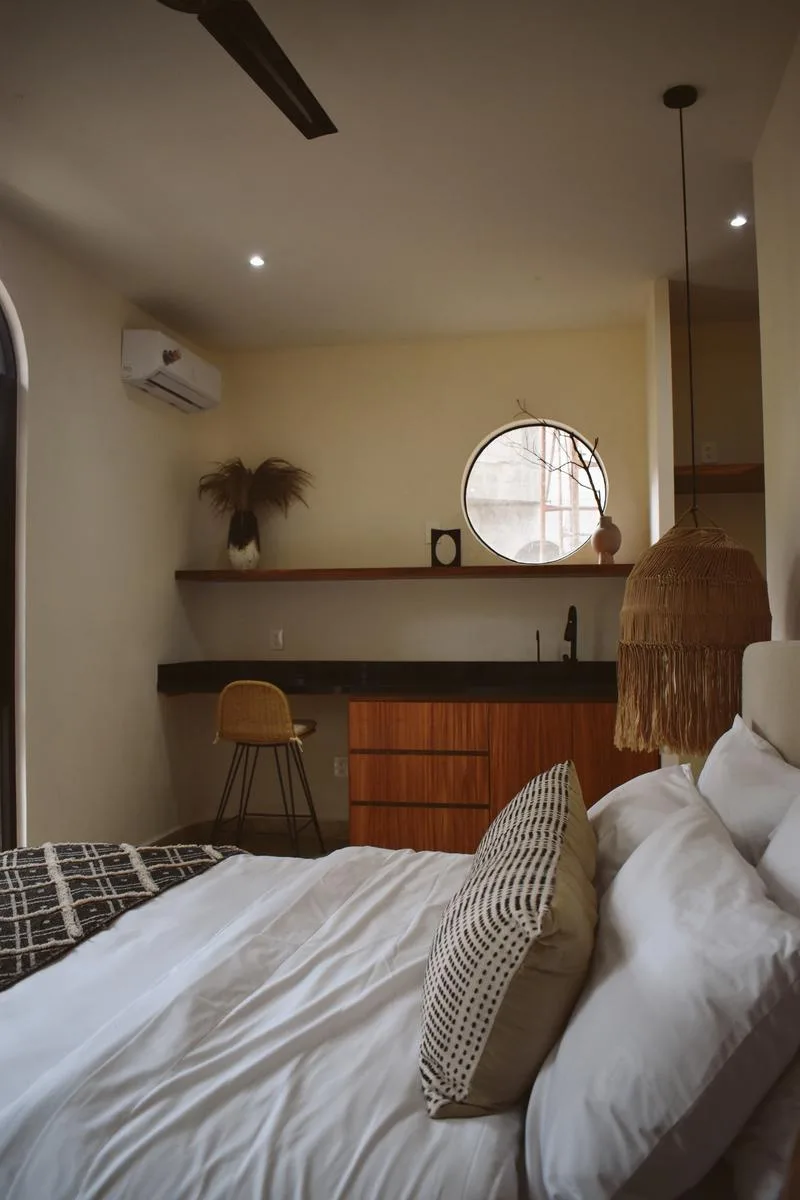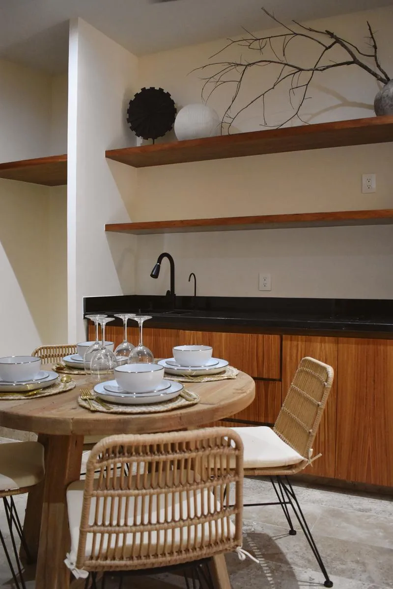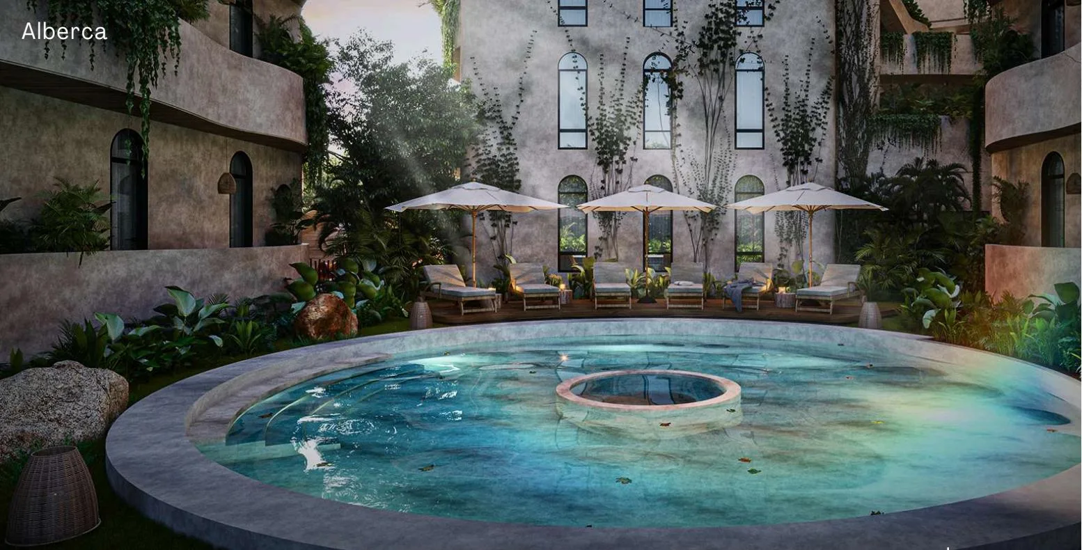 This studio for sale is located in Tulum's Region 10 and includes a private balcony. The unit has a total area of 42. 9 square meters.