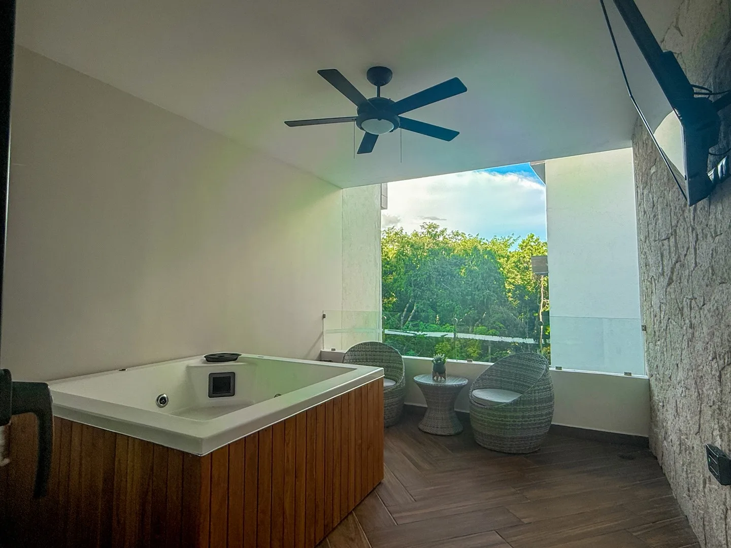 Discover simple luxury and smart design in this beautifully furnished studio within NAIA Tulum, a modern residential community surrounded by lush jungle in Region 15.