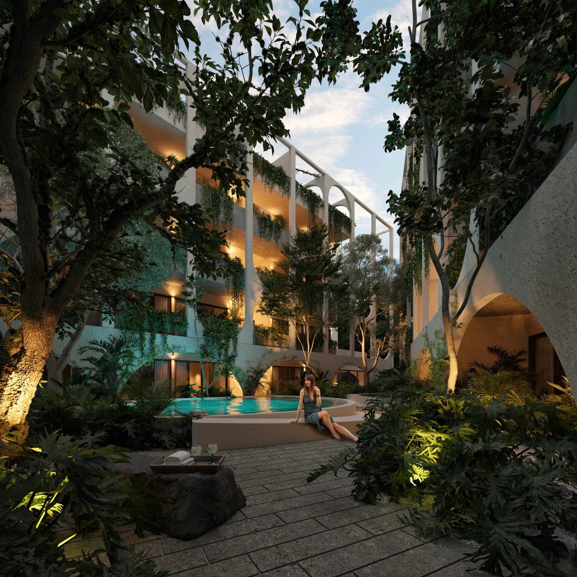 Tulum Residential Development with 1-3 Bedrooms, Architectural Arches and Jungle Integration near Archaeological Zone
