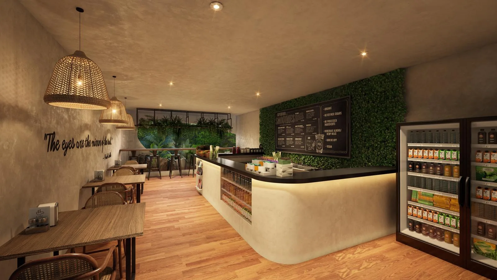 The building has a lobby, a traditional Mayan purification Temazcal, and a business center. Leisure amenities include a green area for cultivating herbs and vegetables, a massage area, a minigolf course, and a fresh juice bar.